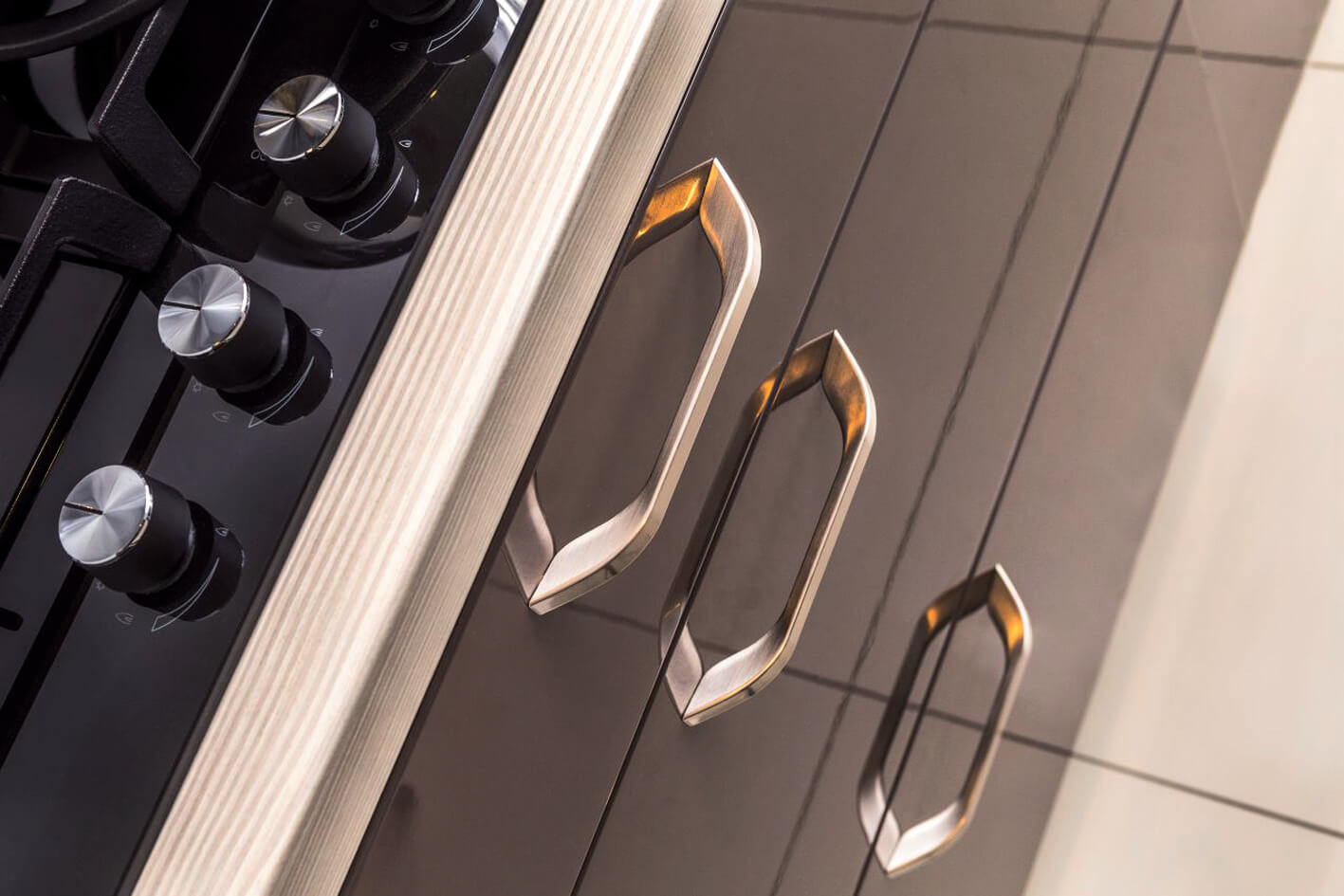 Spłaszczone nóżki i aksamitna powłoka uchwytów CONO będą idealnym uzupełnieniem mebli o jednolitych, prostych kształtach. Znajdą zastosowanie zarówno w przestrzeni kuchennej, jak i w strefie wypoczynku. W zależności od pomysłu na aranżację model UU17 może wtopić się w tło mebli lub wręcz przeciwnie – stać się najbardziej widocznym elementem wnętrza.