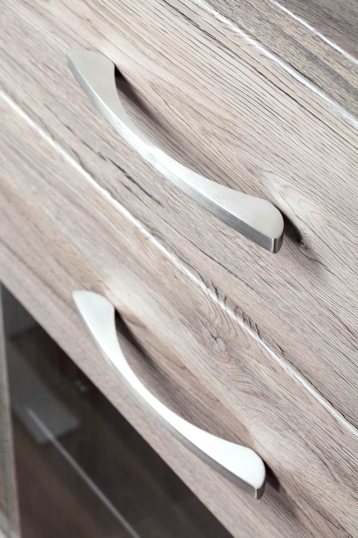 Delikatnie półkolista forma oraz zaokrąglenia przy brzegach to główne cechy serii PONTE. Kolekcja ta umiejętnie łączy w sobie prostotę i elegancję, dlatego będzie dobrze uzupełniać zarówno klasyczne, jak i nieco bardziej futurystyczne meble. Model UU03 dobrze sprawdzi się także w połączeniu z surowym drewnem lub jasnymi, połyskującymi frontami.