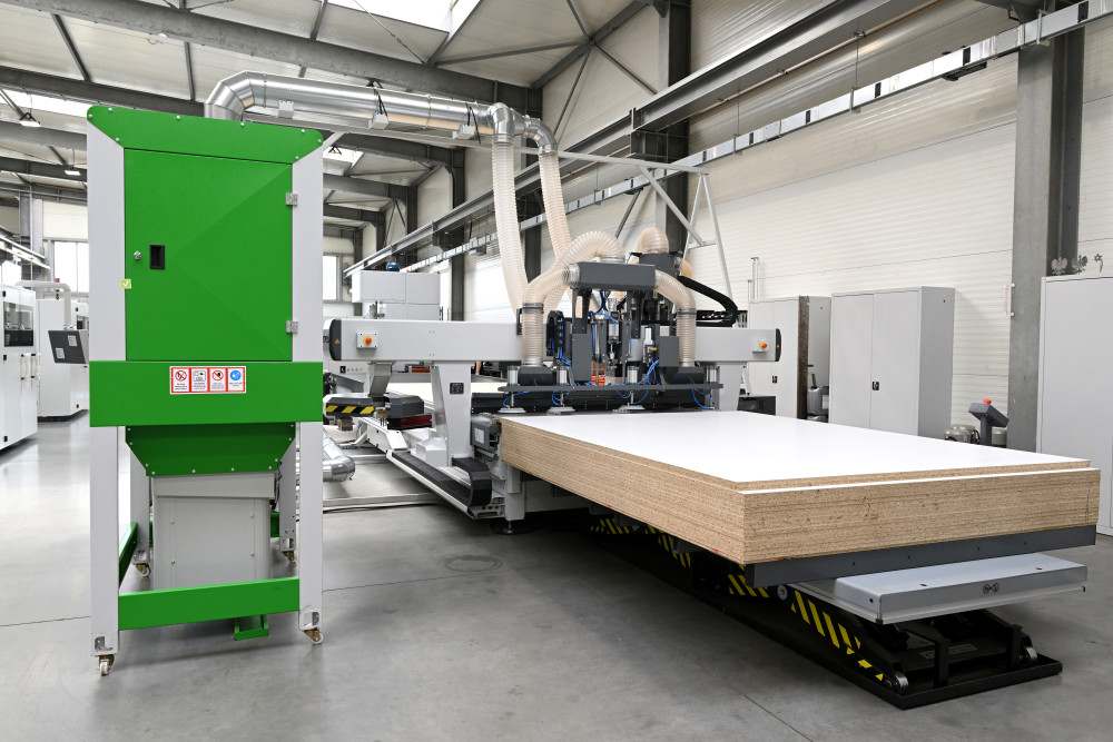 Jeśli chcemy tylko frezować wstępnie pocięte formatki, dobrym rozwiązaniem jest zakup maszyny znacznie mniejszej, ale dwustanowiskowej z dostępem od frontu. Gdy na jednym stanowisku wykonuje się obróbkę elementu, na drugim przygotowuje się elementy do obróbki. Umożliwia to zwiększenie efektywności w stosunku do maszyny jednostanowiskowej. Maszyna dwustanowiskowa zajmuje mniej miejsca na hali niż dwie mniejsze maszyny i takie rozwiązanie jest również znacznie tańsze.