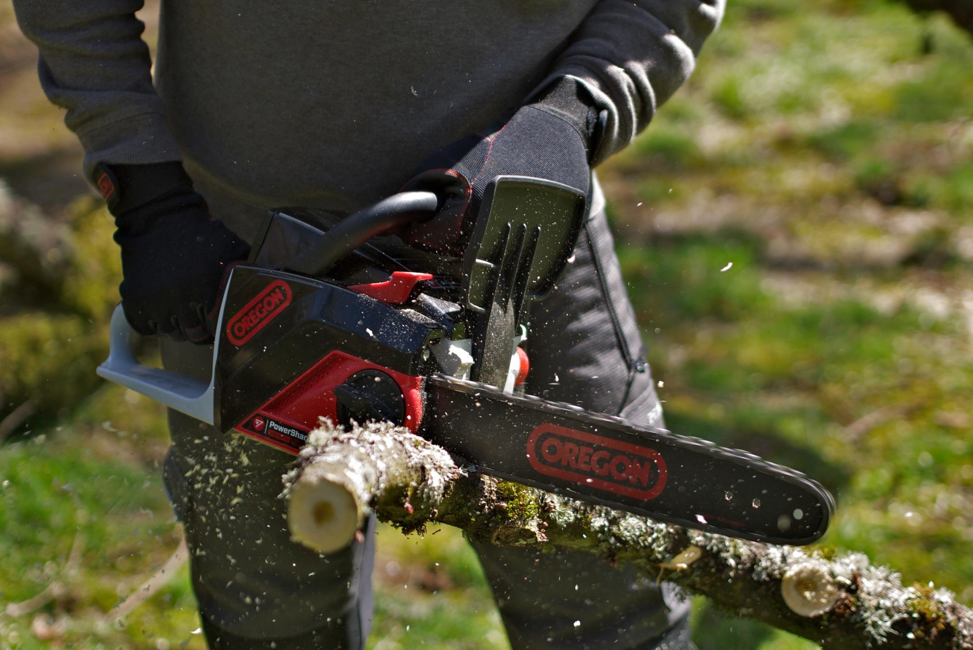 Oczywiście duże znaczenie ma też głośność pracy. Pilarka OREGON CS1500 pracuje o cztery razy ciszej niż standardowe pilarki spalinowe, poza tym jest też zdecydowanie bardziej oszczędna w eksploatacji (również w eksploatacji czasu użytkownika, który nie musi np. przygotowywać mieszanki paliwowej). Powyższe parametry, które przekładają się na ergonomię, precyzję i komfort pracy pilarką, nie odbiły się jednak niekorzystnie na możliwościach urządzenia. Ma ono wbudowany silnik o mocy 2400 Watów, co daje prędkość łańcucha bez obciążenia rzędu 14,7 m/s.