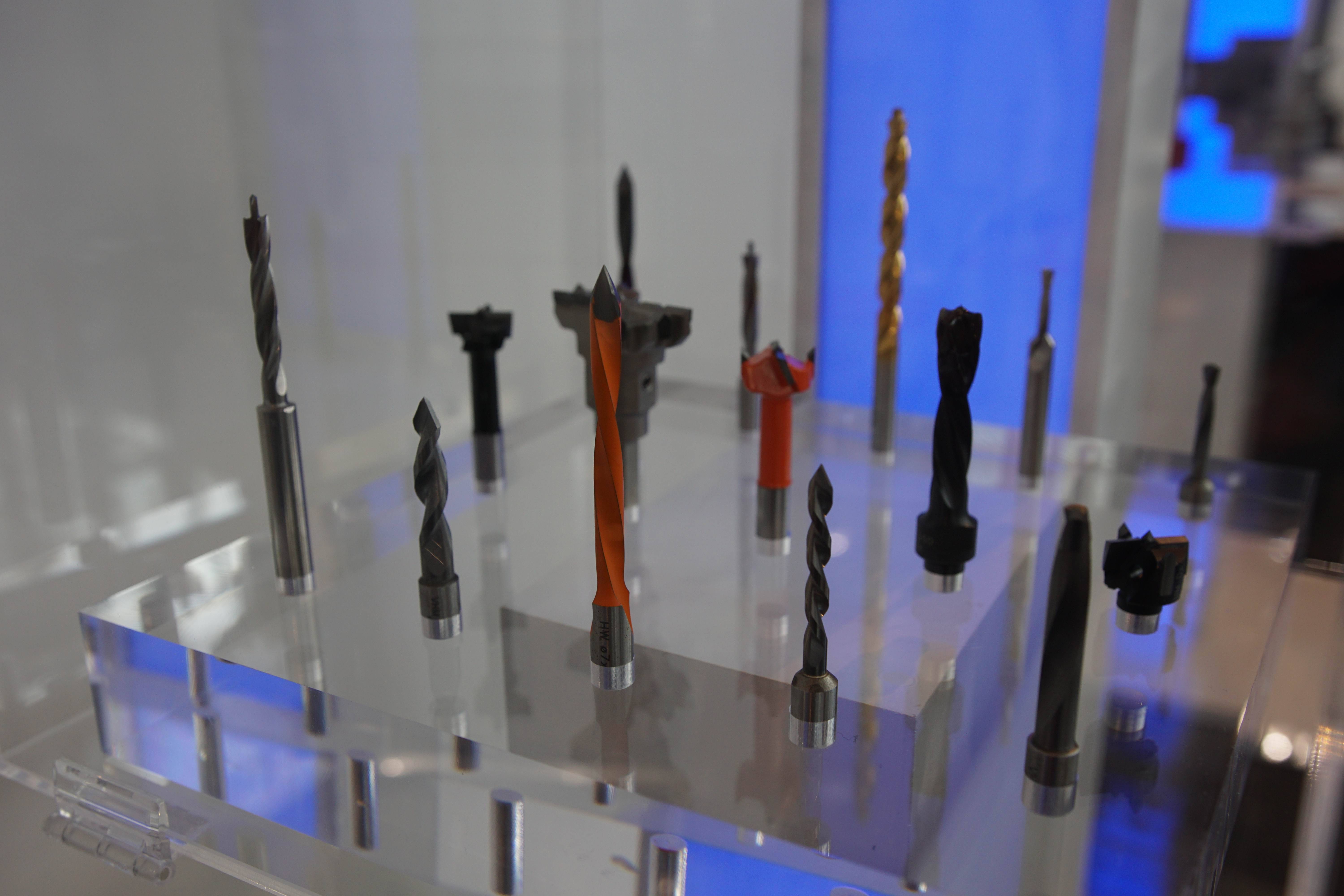 Na stoisku firmy obejrzeć można było także szeroką gamę wierteł do otworów przelotowych i nieprzelotowych o różnej średnicy i geometrii ostrza, wśród nich wiertła monolityczne HSS i HM, wiertła z powłokami zmniejszającymi zużycie ścierne, wiertła stopniowe o złożonym kształcie, puszkowe z główką z pełnego węglika, a także wiertła z lutowanym ostrzem HM. Znaczną część prezentacji targowej firmy stanowiły narzędzia nasadzane: profilowy frez z ostrzami PKD do produkcji deski podłogowej i paneli warstwowych, proste frezy diamentowe do wysoko wydajnej obróbki na okleiniarkach oraz inne przeznaczone do frezowania powierzchni płaskich, obróbki rowków i wręgów. Zaprezentowano też głowicę aluminiową na noże wymienne HM do obróbki drewna litego i klejonego przeznaczoną do formatowania i wyrównywania powierzchni oraz głowicę formatyzującą prostą z ostrzami lutowanymi PKD, dedykowaną do efektywnej obróbki na formatyzerkach. Nie zabrakło też pił tarczowych: z ostrzami HM, z nożami bocznymi do cięcia wzdłużnego drewna na wielopile, z nacięciami wyciszającymi do cięcia poprzecznego drewna, jednostronnie skośnych do formatowania jednostronnego, a także pił podcinających.