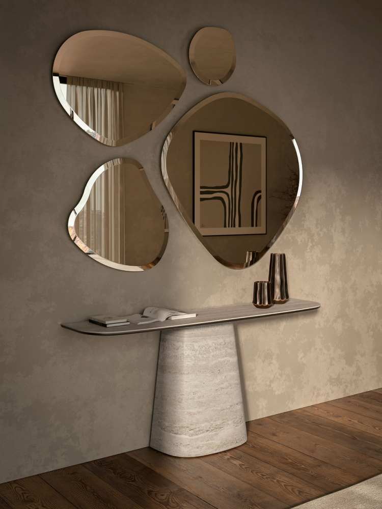 – Bardzo mocnym akcentem trendu są lustra o organicznych, nieregularnych, biomorficznych kształtach. Bez ram, zawieszone jakby od niechcenia, ale robiące wrażenie obiektem sztuki współczesnej. Ten brak ramy dodatkowo potęguje futurystyczną iluzję – lustro wygląda, jakby wyrosło ze ściany, jakby było fragmentem innej rzeczywistości – wskazuje Sylwia Gulewicz-Wysocka.