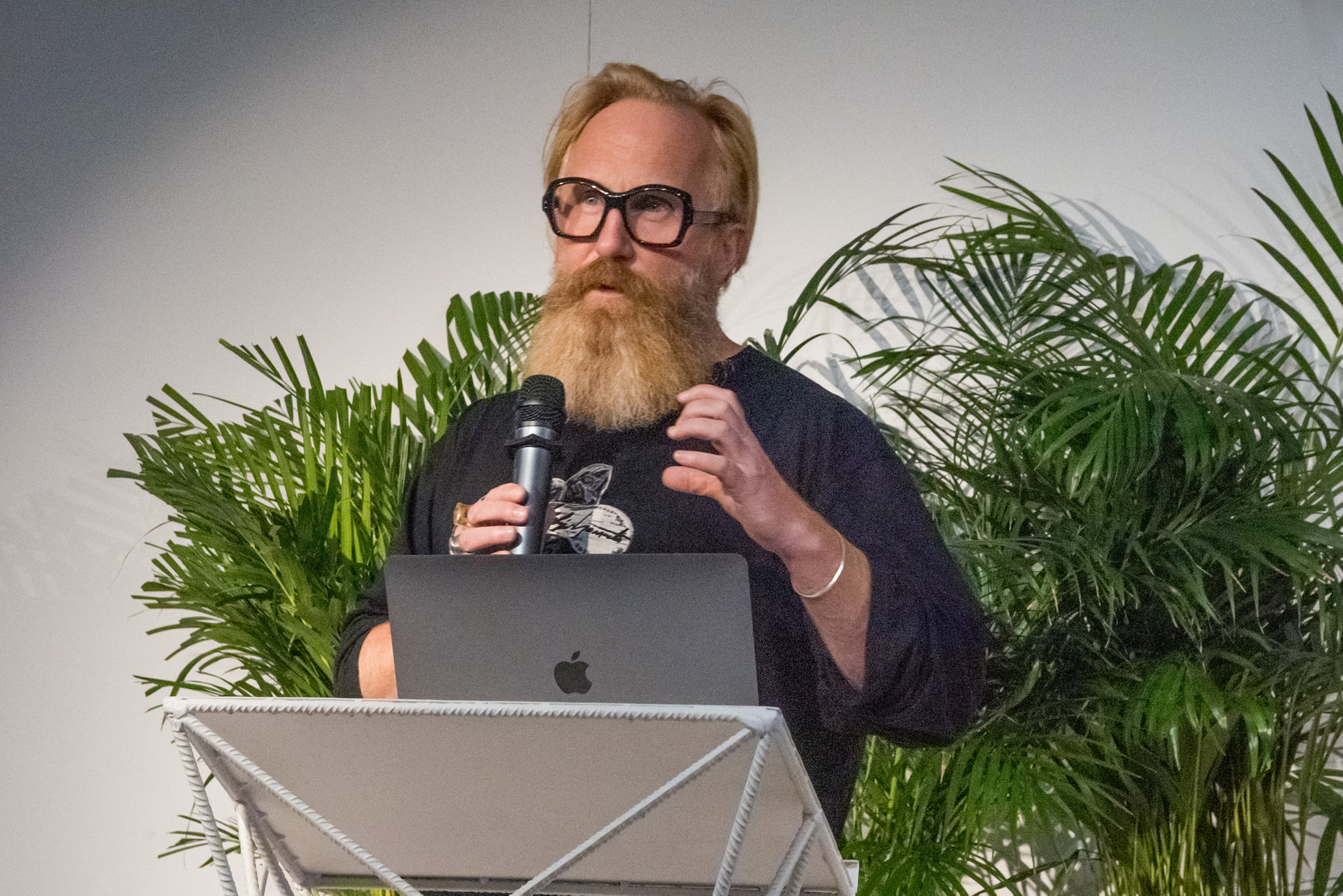 Jak zwykle podczas spotkań OKK! design na scenie wystąpili znakomici goście specjalni. Pierwszy z nich, dr Szymon Hanczar, architekt wnętrz i projektant przedmiotu, właściciel biura hanczarstudio, wykładowca wrocławskiej Akademii Sztuk Pięknych, przewrotnie zatytułował swoją prezentację „O tym jeszcze nie mówiłem…”. Opowiedział o projektach stoisk targowych (m.in. dla marki Barlinek) i przestrzeni biurowych. Podzielił się także z widzami pasją do majsterkowania, przybliżając ciekawe rozwiązania, które zastosował w swoich projektach mebli.