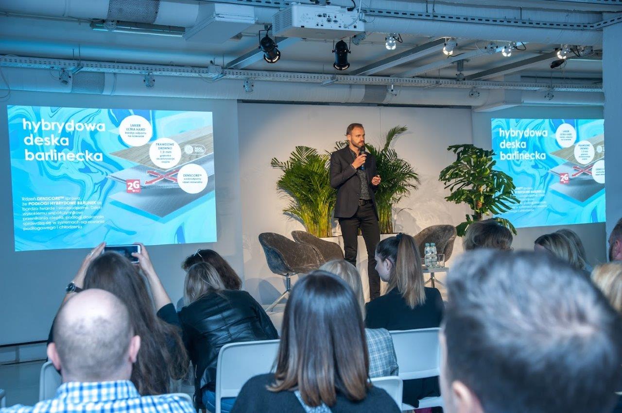 Współorganizatorem spotkania był producent wysokiej jakości podłóg – firma Barlinek, która zaprezentowała gościom swoją najnowszą kolekcję NEXT STEP. W jej skład wchodzą wodoodporne podłogi hybrydowe, o których opowiedział o Robert Kupczewski, Senior Product Manager. Drugą częścią kolekcji są podłogi winylowe, zaprezentował je Przemysław Sołtysiak, Dyrektor Produktu. Widzowie poznali rewolucyjne cechy nowych produktów oraz sposobu montażu. Mieli ku temu okazję zarówno bezpośrednio po wystąpieniach, kiedy eksperci na gorąco odpowiadali na pytania publiczności, jak i podczas rozmów z przedstawicielami przy ekspozytorach z próbkami podłóg marki Barlinek.