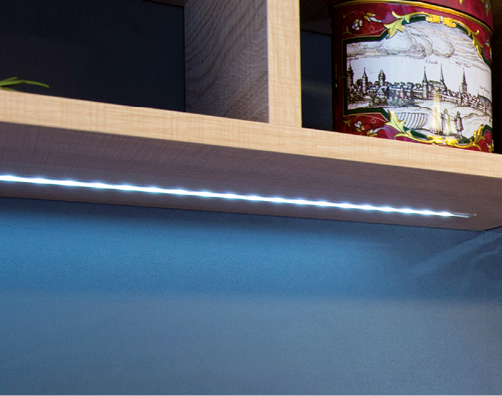 Oświetlenie jest nieodzownym elementem każdego mebla i może pełnić zarówno funkcję dekoracyjną, jak i użytkową. Witryny, regały i półki wiele zyskują na estetyce poprzez zastosowanie właściwego oświetlenia. Oprawy LED firmy GTV idealnie spełniają to zadanie, a przy tym gwarantują oszczędność energii oraz długi czas użytkowania. Aktualnie dominującym trendem jest montaż taśm LED-owych, które można stosować niezależnie.