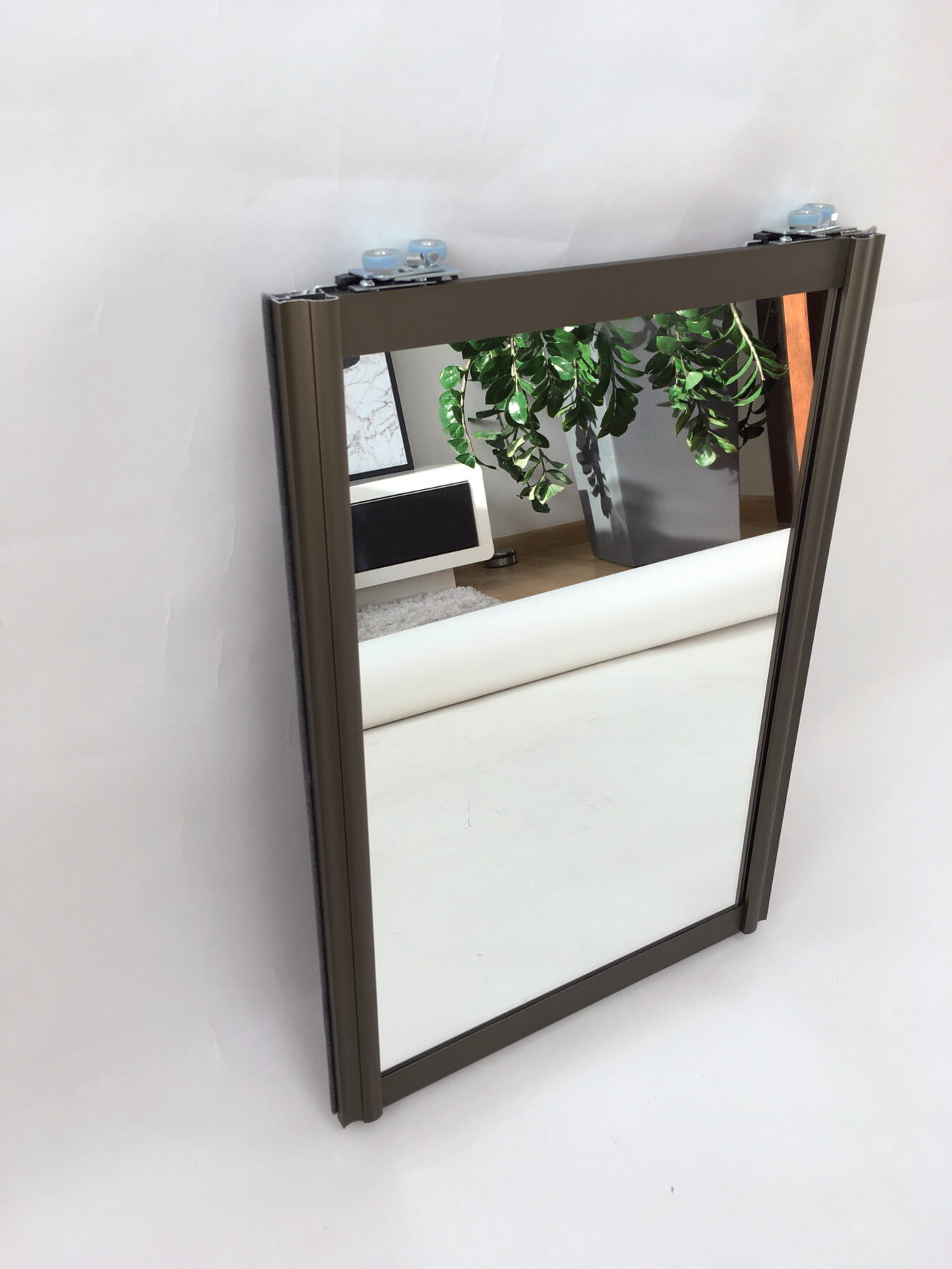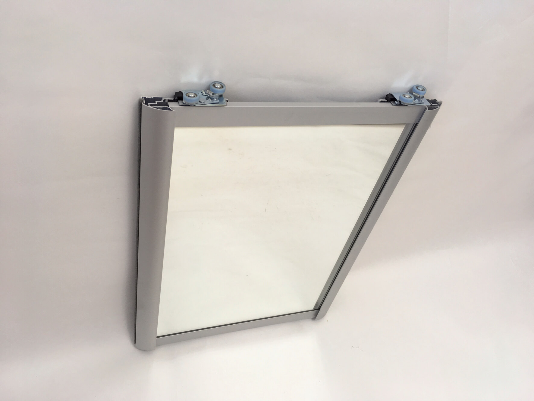 Innowacyjna konstrukcja ramiaka i rączki pozwala na stosowanie szkła i płyty bez uszczelek czy klinów wypierających. W systemie tym zastosować można płytę 8 mm lub szkło 4 mm.