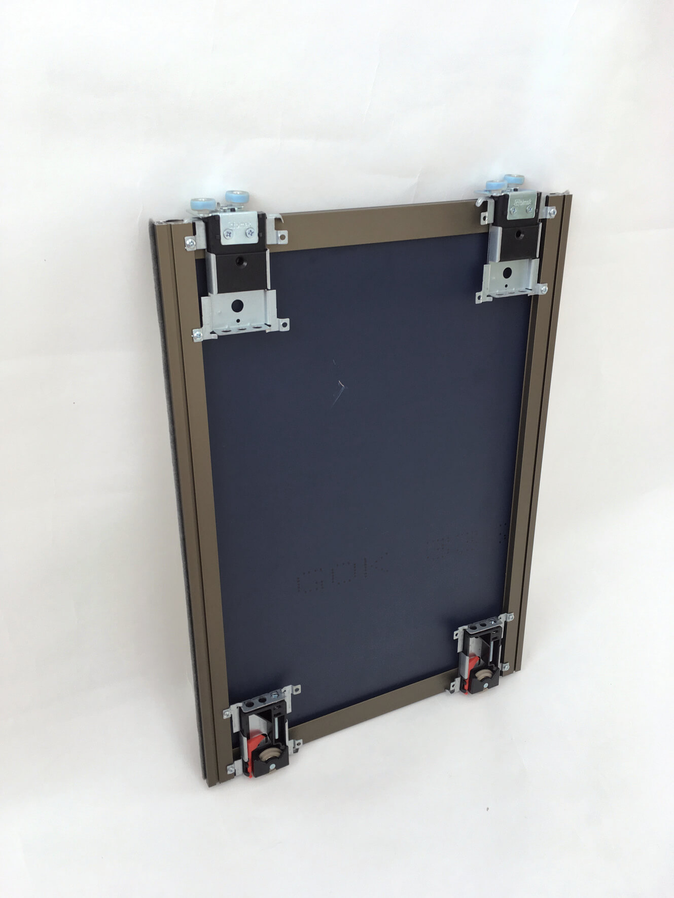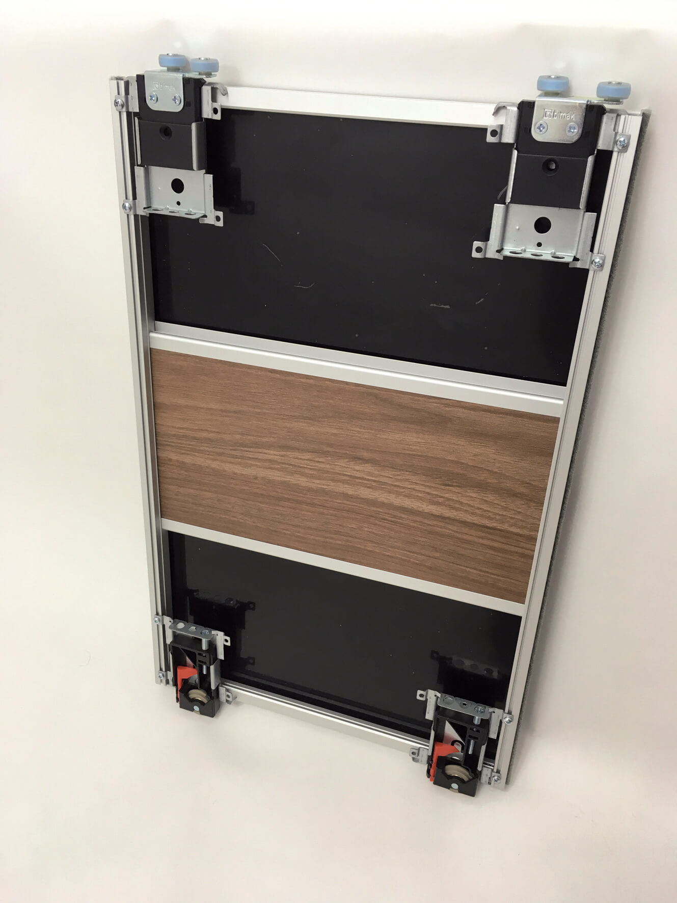 To uniwersalny system do budowania drzwi w oparciu o szkło 4 mm i płytę 8 lub 10 mm. Nowatorska, opatentowana konstrukcja pozwala na budowanie skrzydeł łączących płytę i szkło w różnych konfiguracjach. Dzięki zastosowaniu wózków, które stanowią jednocześnie łącznik rączek z ramiakami, czas montażu został zmniejszony kilkukrotnie.