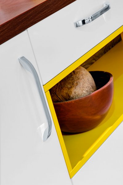 Oryginalny profil uchwytu idealnie predysponuje go do zastosowań na jasnych frontach kuchennych. Wykonany jest ze znalu i dostępny w trzech długościach: 145 mm (rozstaw 128 mm), 209 mm (rozstaw 192 mm) oraz 337 mm (rozstaw 320 mm). Dostępne wersje kolorystyczne to: chrom błyszczący (ZN1) i efekt stali szlachetnej (ZN21).