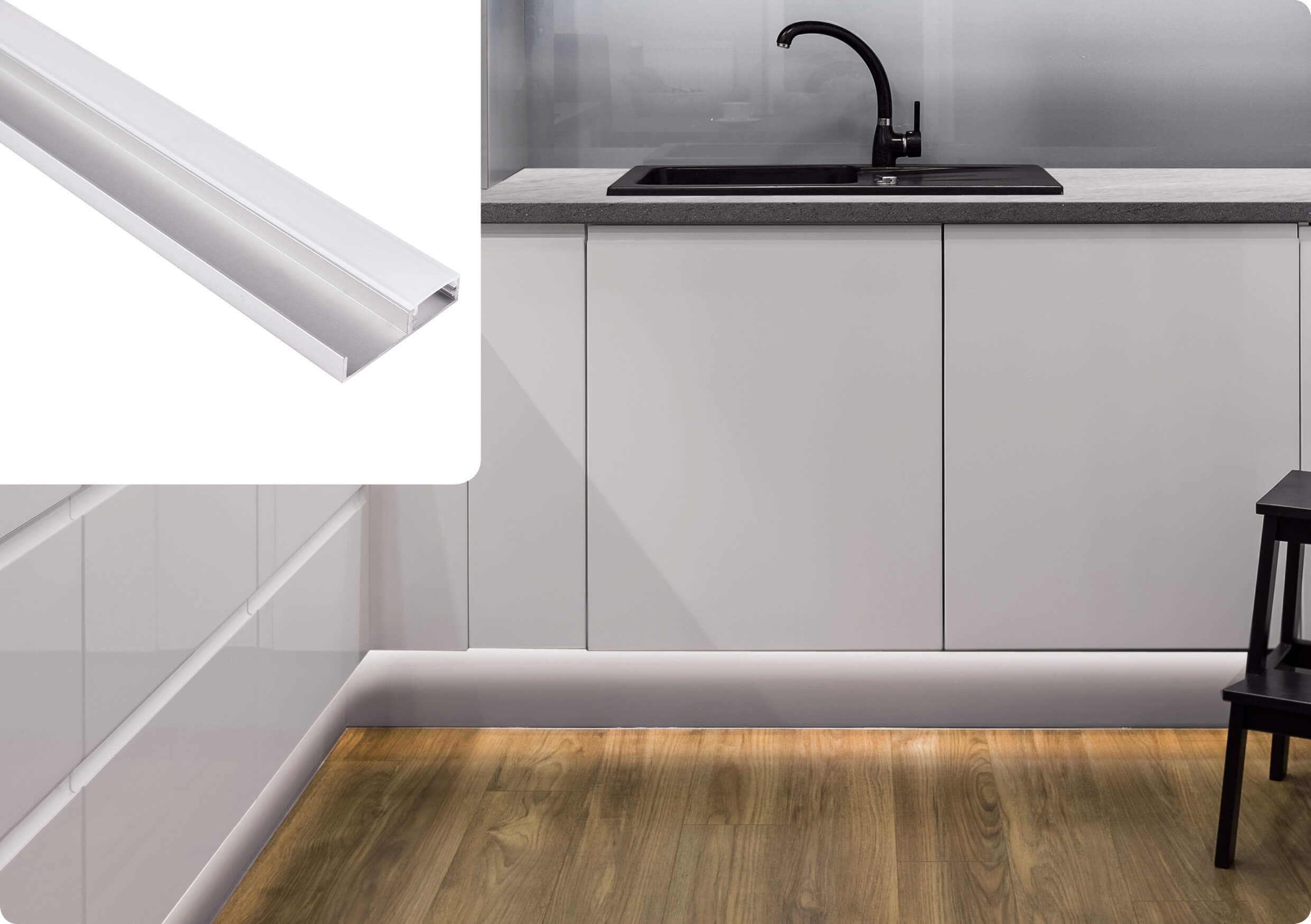 Jest to jedna z nowości w szerokiej ofercie profili, jakie dostarcza na rynek Design Light. Produkt wykonany jest z wysokiej jakości anodowanego aluminium i przeznaczony do montażu na cokoły meblowe.  Podświetla dolną część mebli i fragment podłogi dzięki możliwości zastosowania taśmy LED-owej.