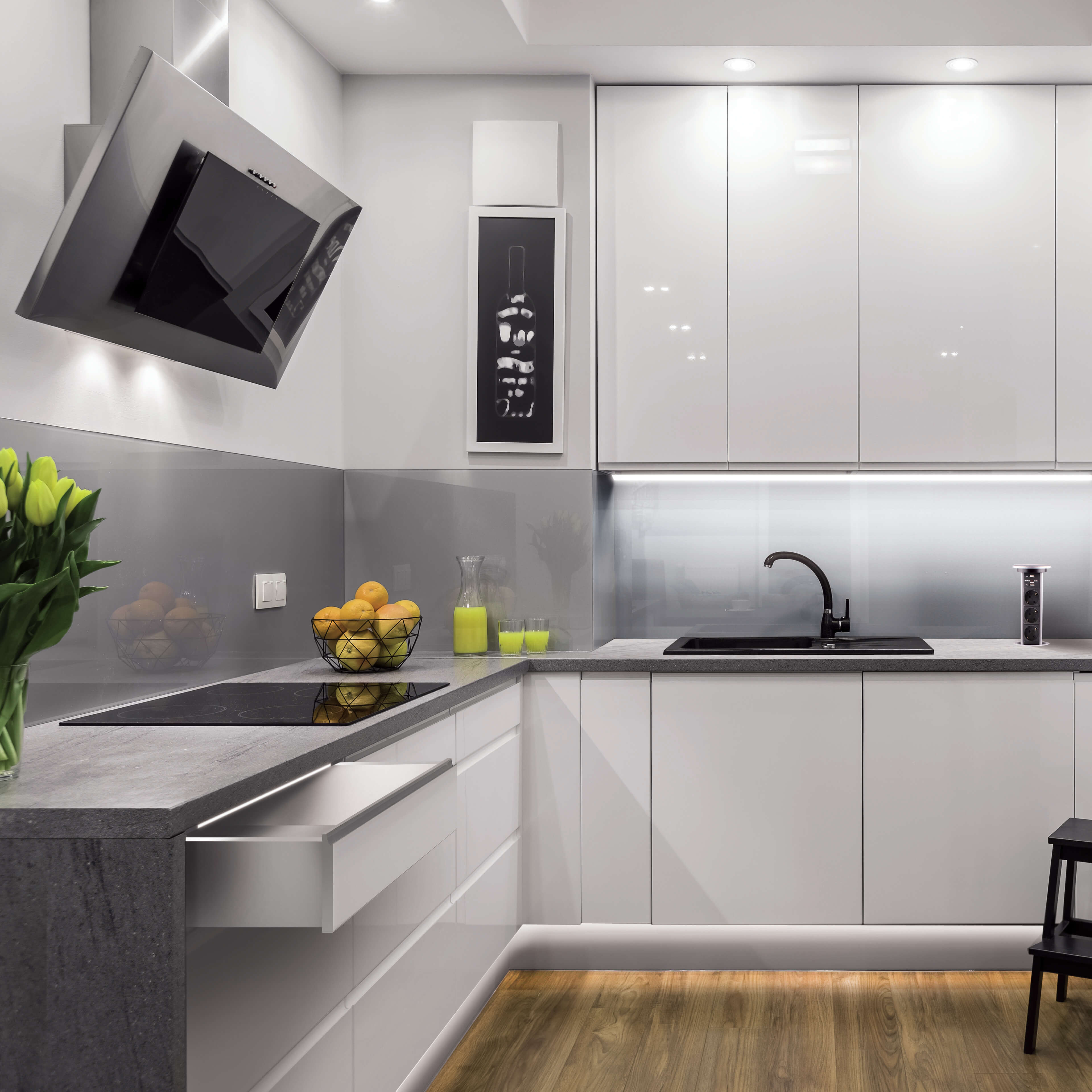 Oprawa podszafkowa FUTURA XC, oprawa do szuflad POLARUS P, gniazdo meblowe – przedłużacz LIFT BOX oraz profil do cokołów FLOOR LINE to produkty dedykowane do mebli kuchennych i przykłady kompleksowej oferty firmy Design Light do wszystkich stref w kuchni.