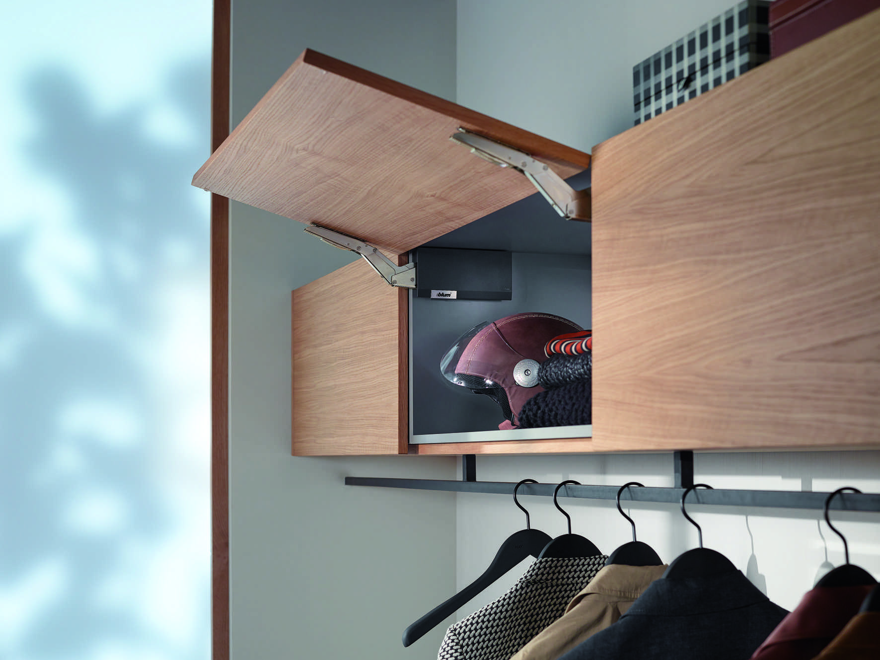 Funkcjonalność AVENTOS HK top może być jeszcze większa dzięki połączeniu z technologią ruchu. Podnośnik sprawdzi się w rozwiązaniach bezuchwytowych oraz z uchwytami. Dostępne są dwa typy rozwiązań. Pierwszy z zintegrowanym systemem cichego domyku – BLUMOTION. Drugi dostosowany do technologii TIP-ON pozwalającej na mechaniczne otwieranie po naciśnięciu frontu. Wariant z BLUMOTION może zostać wyposażony w elektryczne wspomaganie SERVO-DRIVE, które pozwala na automatyczne i pełne otwarcie frontu po jego naciśnięciu oraz automatyczne zamknięcie po przyciśnięciu włącznika umieszczonego na boku korpusu.