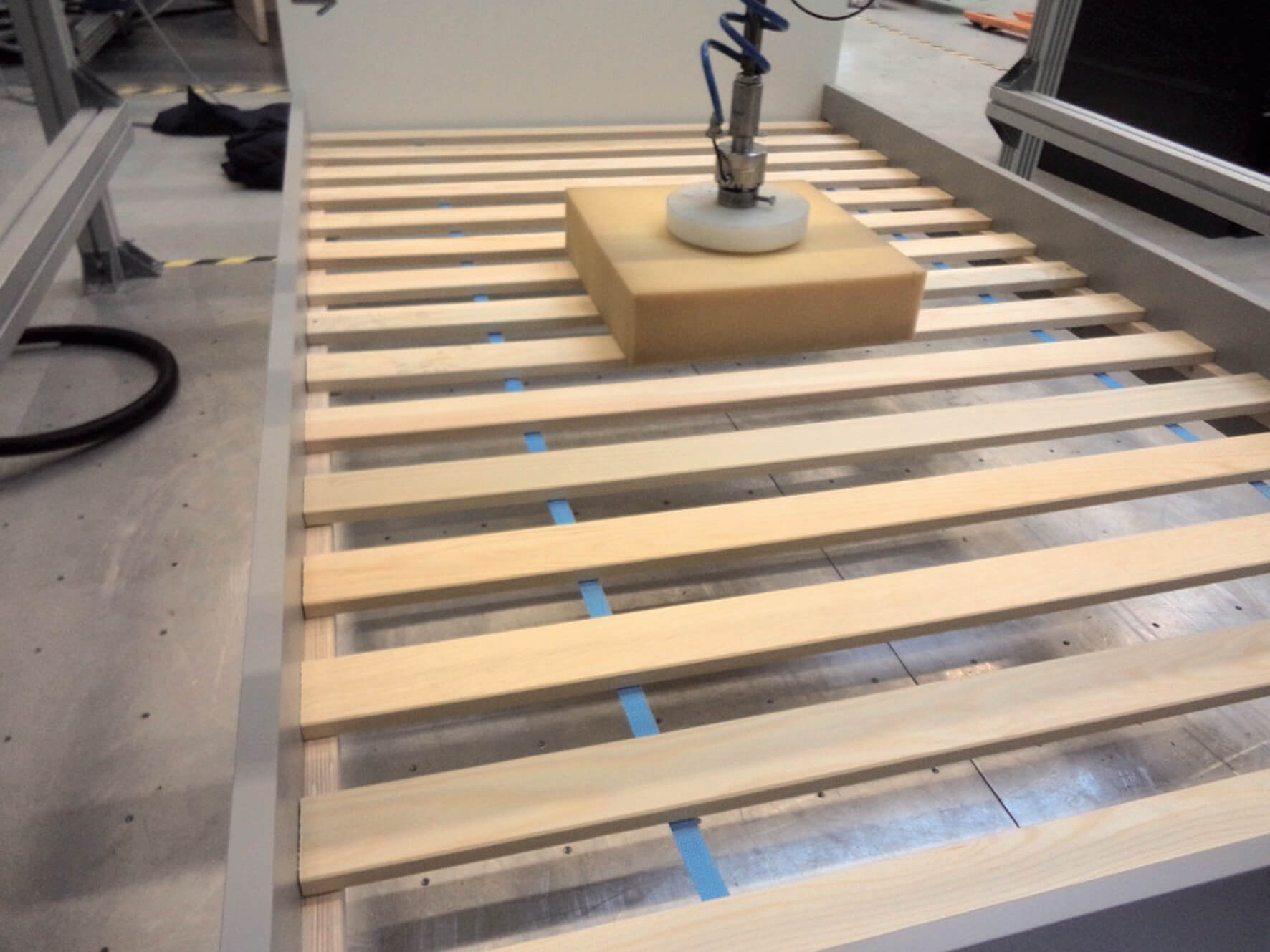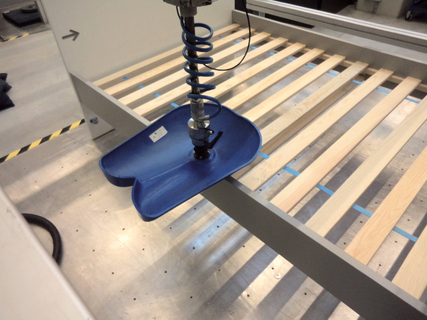 Zdecydowanie najwięcej wymagań dotyczy jednak wytrzymałości mechanicznej i trwałości tego rodzaju mebli. W jednym z testów obciąża się dno łóżka w dwóch punktach oddalonych o 300 mm od środka łóżka siłą 1200 N. Wytrzymałość weryfikuje się, obciążając cyklicznie 10.000 razy mebel w trzech punktach siłą 1000 N. Miejsca przyłożenia tej siły są zdefiniowane w normie. Wytrzymałość brzegu łóżka testuje się siłą 1000 N przez 5000 cykli. Siła jest przykładana w środku łóżka, 200 mm w jego głąb, licząc od brzegu materaca. Kolejnym testem jest statyczne obciążenie łóżka siłą 1400 N, gdzie miejsce przyłożenia tej siły wybierane jest dowolnie przez eksperta prowadzącego badanie. Bazując na swoim doświadczeniu, wybiera punkt, który według niego ma najwyższe ryzyko uszkodzenia. Jeśli mebel nie uległ zniszczeniu, ekspert może dodatkowo wykonać ten test we wszystkich tych miejscach, w których widzi potencjalne zagrożenie.
