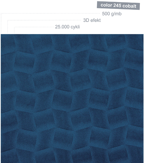 Efektem finalnym tych zabiegów jest wizualny efekt 3D, ma on postać regularnie powtarzającego się geometrycznego kształtu o wyraźnie zaznaczonych konturach. W ten oto sposób rodzi się dzianina inteligentna. To właśnie ten nowoczesny deseń zapewnia materiałowi wyjątkowe walory estetyczne, stanowi o jego ponadczasowości i warunkuje aktualność. Jest jego największym, ale nie jedynym atutem. Oneway bowiem, mimo swej, zdawałoby się chłodnej i surowej genezy, jest ciepłym i przyjemnym w dotyku welurem. Jego walory dotykowe sprawiają, że jest jeszcze bardziej lubiany przez klientów, którzy cenią sobie wysokie standardy i nowoczesne wzornictwo.