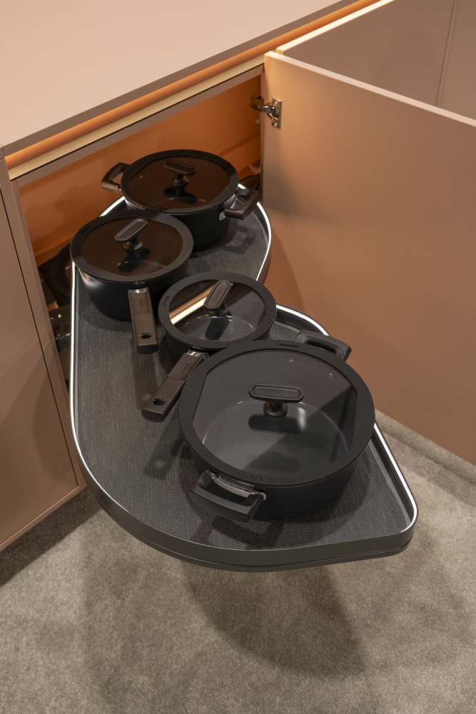 PEKA zaprezentowała także rozwiązania, które eliminują problem trudno dostępnych szafek i ślepych narożników. Jednocześnie podnoszą one komfort codziennych czynności dzięki inteligentnym udogodnieniom.