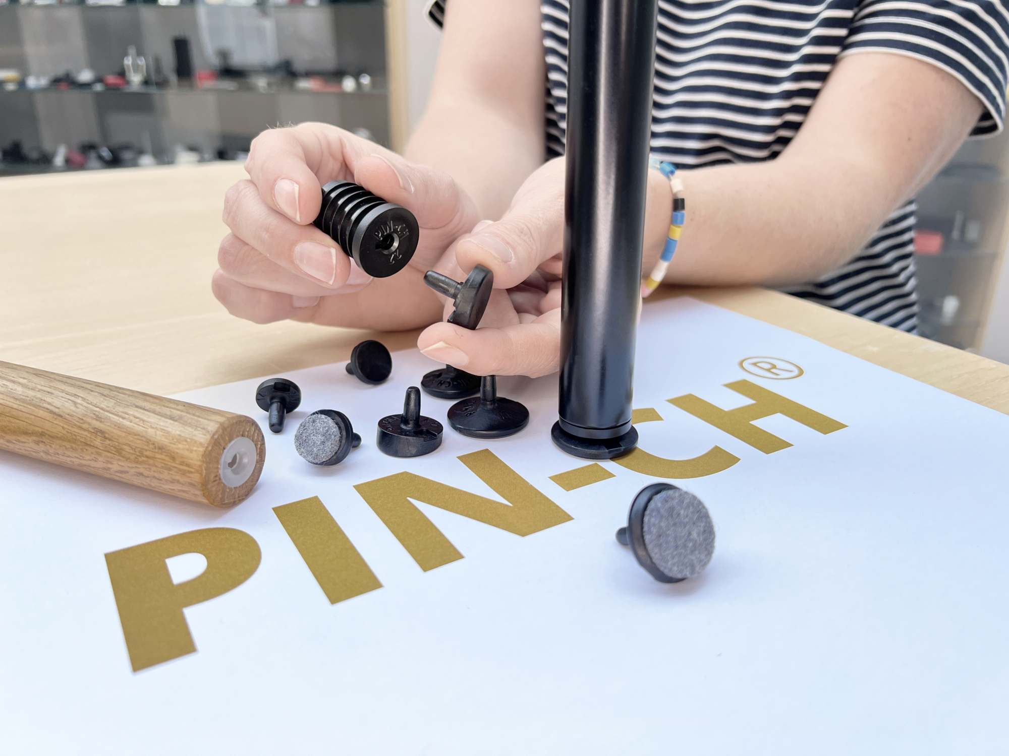 PIN‑CH® składa się z bazy stopki, którą montujemy w nodze mebla, oraz wsadzanej do niej części wymiennej. Samo wymiana końcówek jest bardzo łatwa i nie niesie niebezpieczeństwa uszkodzenia mebli. Dokonuje się jej bez użycia specjalistycznych narzędzi. Część wymienna stopki posiada rowki, które ułatwiają jej wyciągnięcie. W przypadku zużycia stopek, zmiany miejsca użytkowania mebla na podłogę o innej powierzchni, czy też chęci nadania meblowi nowego wyglądu każdy bez problemu może tego dokonać. Dzięki PIN‑CH® producenci mebli mogą oferować klientom krzesła, które niezależnie od rodzaju podłogi będą zawsze w pełni funkcjonalne.