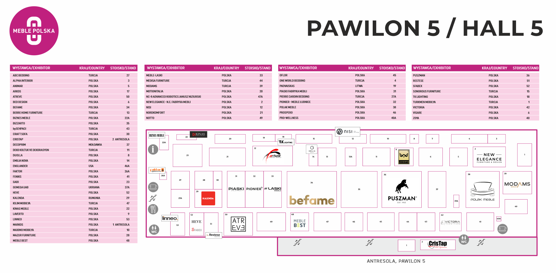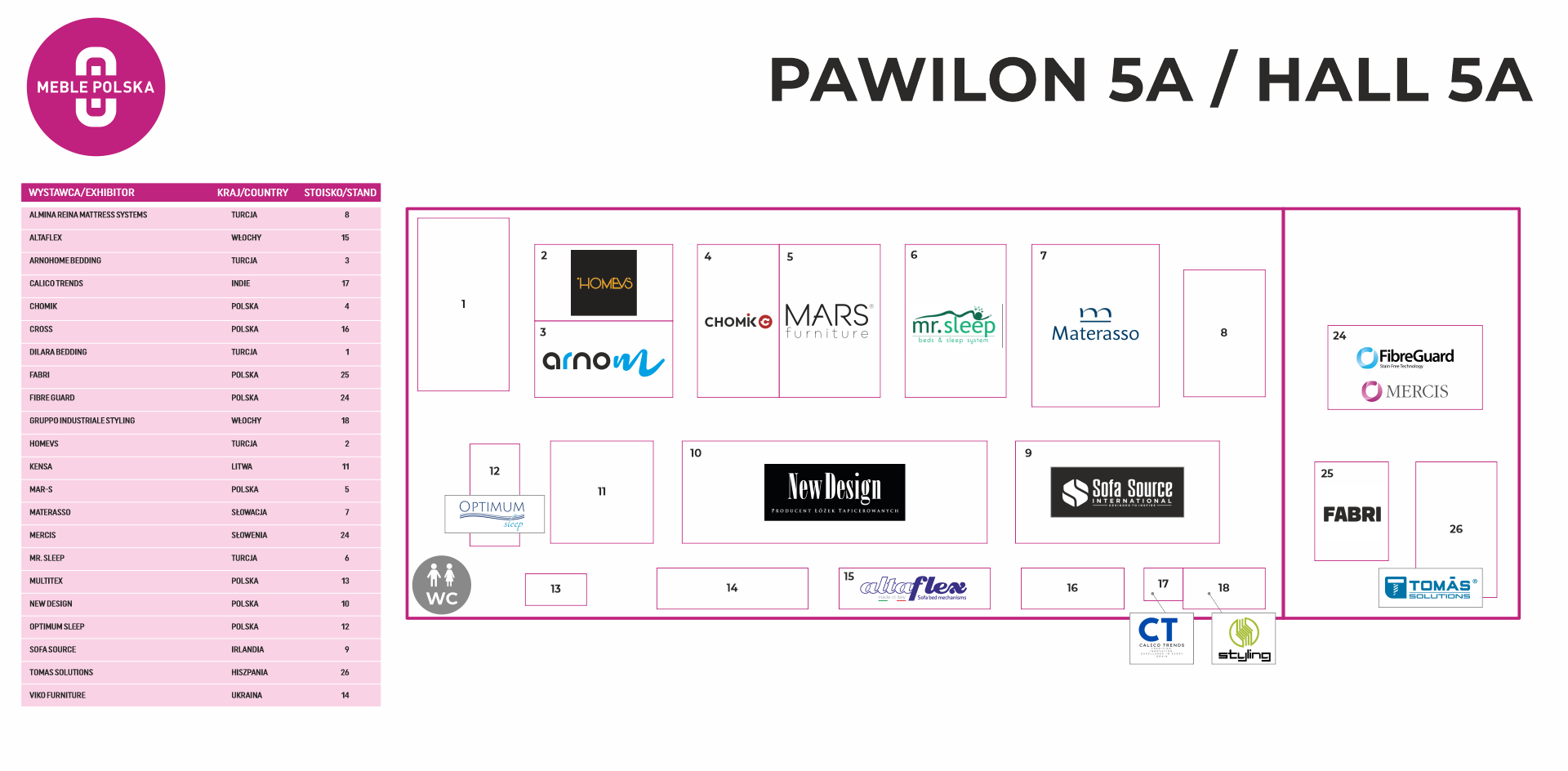 Podział pawilonów według branż: