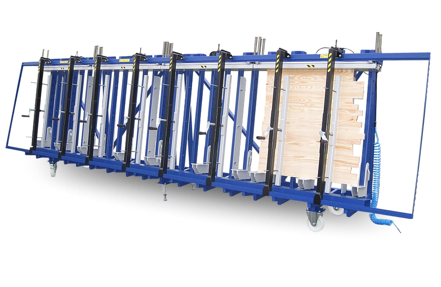 Tego typu prasy przeznaczone są do klejenia drewna dla stolarki budowlanej typu: okna, drzwi, belki, parapety, do klejenia płyt meblowych, stopni schodowych itp. Długość elementów klejonych wynosi maksymalnie 8000 mm,