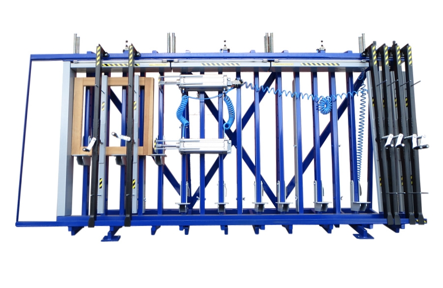Jest to prasa pneumatyczna trapezowa z dociskiem bocznym, która swoich nabywców znajduje najczęściej w zakładach klejenia i montażu drzwi i okien, belek, parapetów, stopni schodowych, płyt meblowych itp.