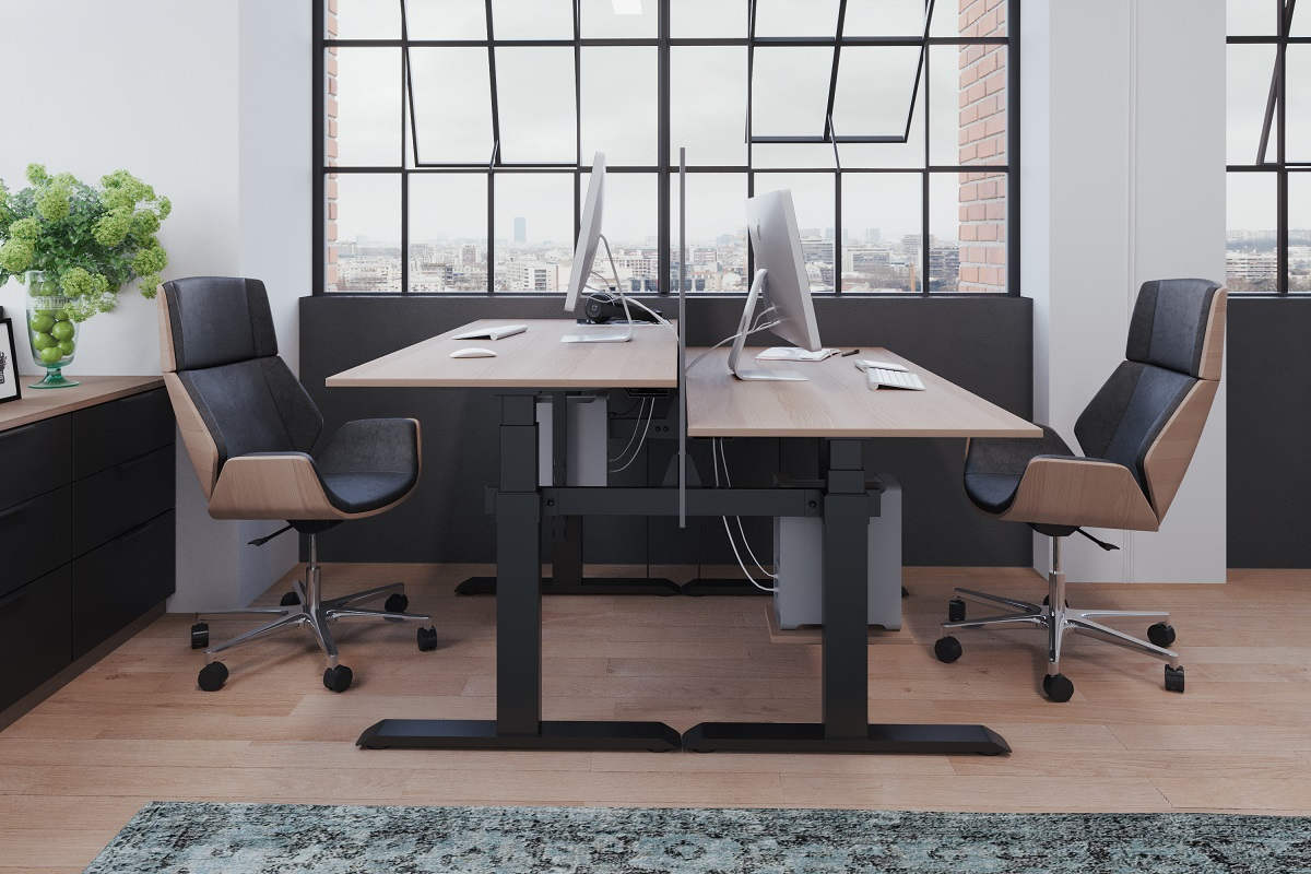 W każdym biurze są chwile gdy pracujemy w zespole – rozmawiamy, konsultujemy, dzielimy się pomysłami. Są też momenty, w których potrzebujemy spokoju, ciszy i przestrzeni do skupienia. Jak stworzyć warunki umożliwiające oba te typy pracy? Dzięki Futuro i to jest bardzo proste. Dzięki łącznikom biurek, możemy w prosty sposób stworzyć przestrzeń do pracy wspólnej. Możemy również na tych samych łącznikach zamocować płyty lub panele akustyczne, które rozgraniczą stanowiska, a w ten sposób stworzą przestrzeń do pracy samodzielnej. Co ważne, niezależnie od łączników i ewentualnych paneli, wysokość blatu każdego z biurek możemy regulować niezależnie od siebie.