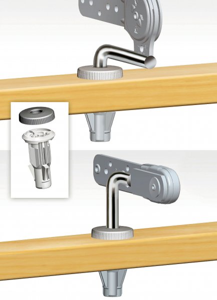 Aby ułatwić transport i montaż mebli, firma Hettich oferuje specjalne złącze UniFix do regulowanych okuć FrankoFlex i VarioFlex oraz unikalne gniazdo zaciskowe do okuć z chromowanymi elementami ozdobnymi w celu ułatwienia wstępnego montażu mebli oraz dokończenia montażu w miejscu użytkowania.