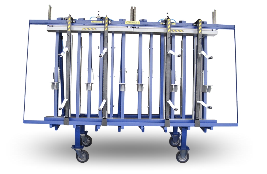 Wśród najbardziej popularnych urządzeń firmy TECH-FA-MILER znajdują się prasy trapezowe (jednostronne i dwustronne oraz z dociskiem bocznym), a także – docenianie szczególnie przez producentów mebli – ściski stołowe otworowe i prasy do montażu korpusów meblowych.