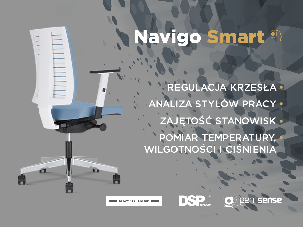 Navigo Smart to zupełnie nowe zastosowanie technologii internetu rzeczy dla smart offices. Krzesło wspiera pracowników w ergonomicznym siedzeniu i pomaga firmom optymalnie aranżować biura, przyczyniając się do większego komfortu, zdrowia i efektywności pracy. Inteligentne krzesło to efekt współpracy Grupy Nowy Styl z Gemsense i DSP Group. Jego premiera miała miejsce podczas największych targów technologii konsumenckich CES 2017 w Las Vegas.