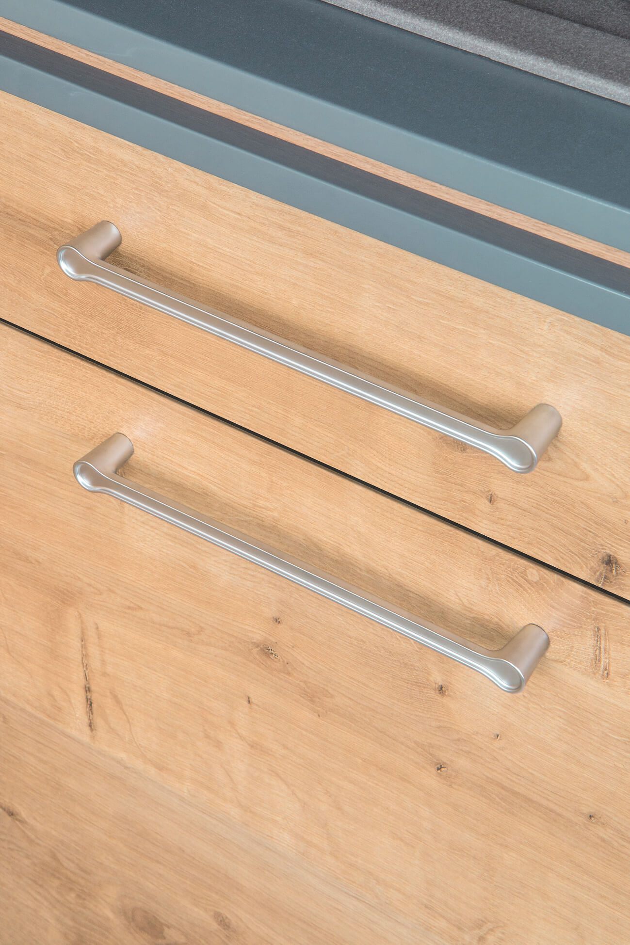 W klimat loftowy wpisuje się najnowsza kolekcja Hantle, która przyciąga uwagę nie tylko swoim kształtem, ale intryguje połączeniem barwnej emalii wraz z satynowym lub chromowanym wykończeniem uchwytu. Dzięki innowacyjnej technologii wypełniania powierzchni uchwytów barwną emalią, stosowanej przez firmę Gamet, uchwyt ten zyskuje nową jakość. W zależności od doboru koloru emalii uchwyt UU15 może zamienić się w bardziej dominujący bądź stonowany element na meblu. Uchwyt ten występuje także w wariancie bez emalii.