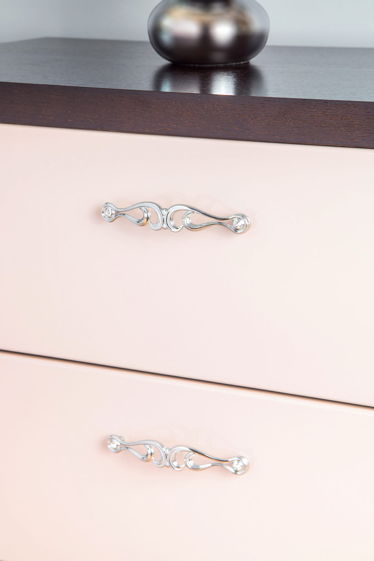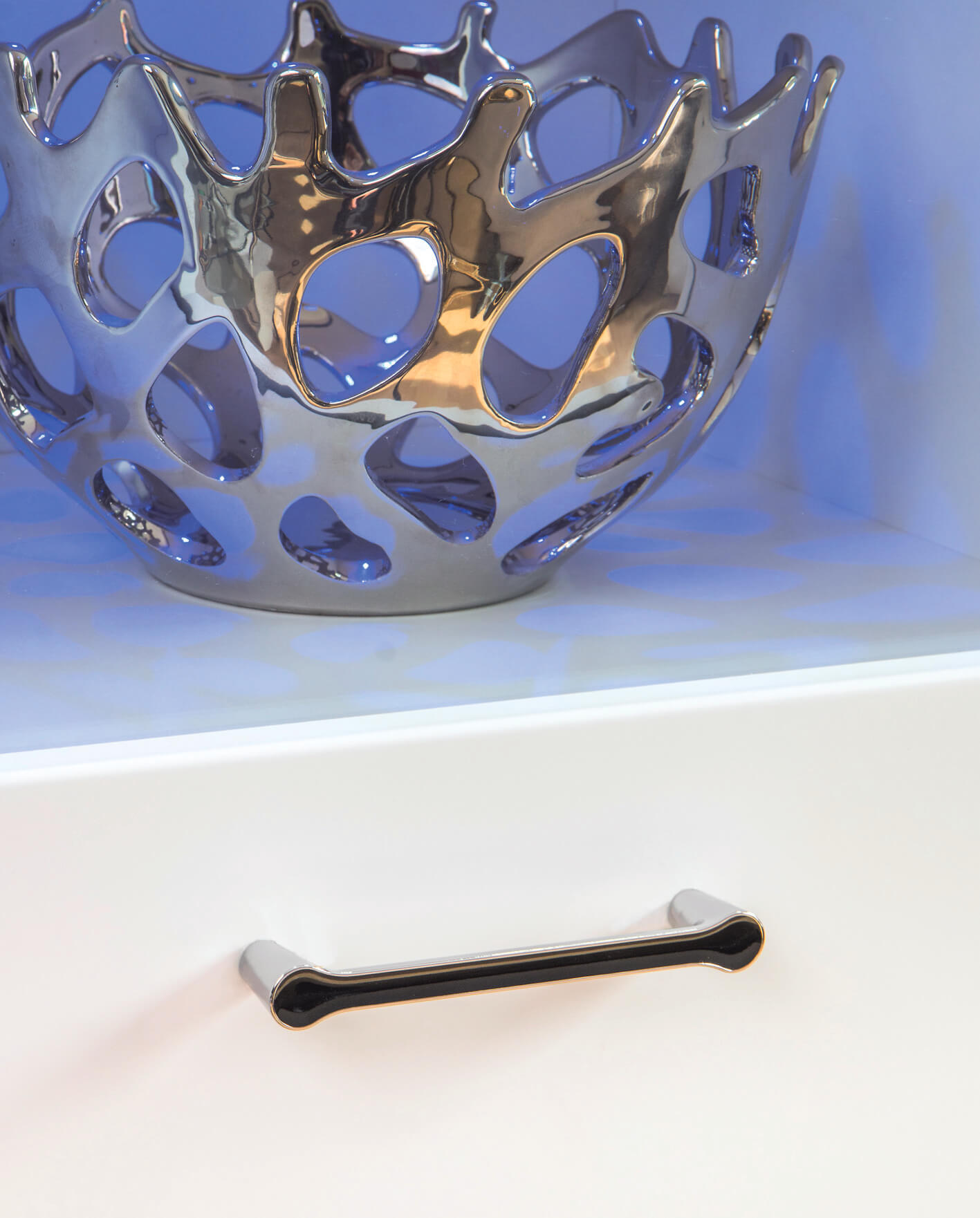 Dla sympatyków bardziej dekoracyjnych akcesoriów meblowych firma Gamet poleca najnowsze uchwyty UR32 z serii Onda. Kolekcja ta miała swoją premierę podczas listopadowych targów Mebel 2015 w Moskwie i już zyskała sobie wielu zwolenników. Stylistyka tych uchwytów bezpośrednio nawiązuje do klasycznego wzornictwa. Jednak w kolorze lśniącego chromu wraz z Crystals from Swarovski® uchwyty UR32 pięknie komponują się z nowoczesnymi meblami, z frontami wykonanymi na wysoki połysk.