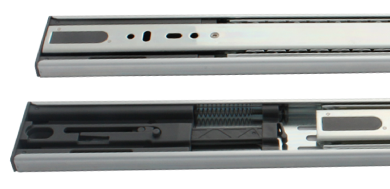 Prowadnice te należą do modeli nowej generacji, wykonane są ze stali ocynkowanej i zawierają mechanizmy ułatwiające ich funkcjonowanie. Obie wyposażone są w nowy typ mechanizmu spowalniającego z funkcją cichego domykania.