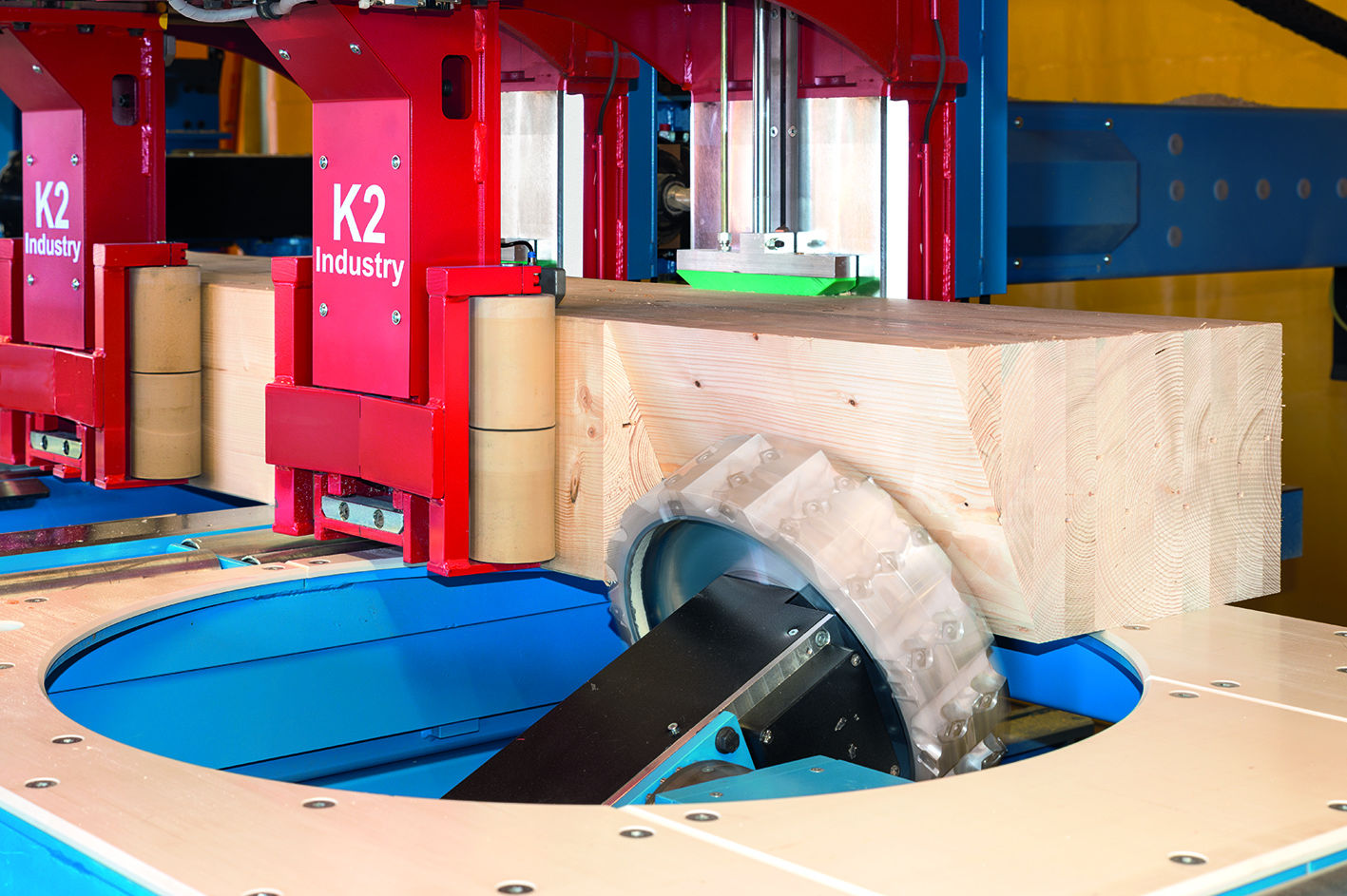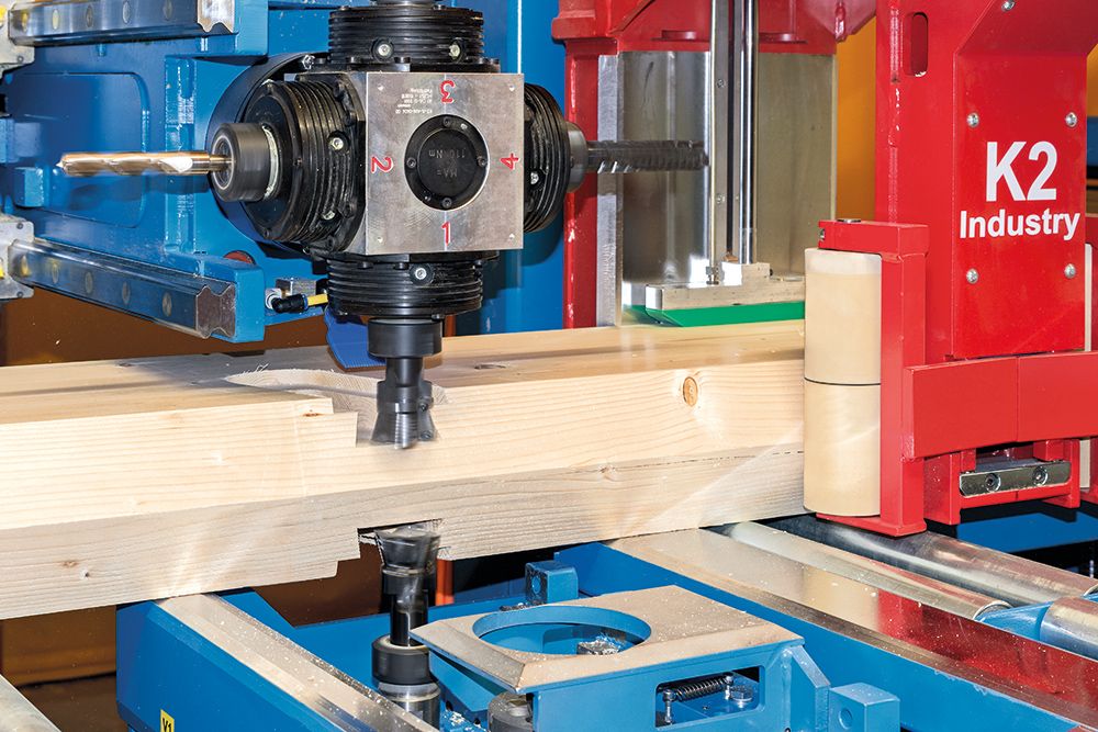 Trwałość w przypadku najcięższych elementów, dokładność nawet przy elementach o ponadstandardowej długości, szeroki program agregatów standardowych i specjalnych to zalety, które szczególnie docenią firmy zajmujące się produkcją konstrukcji z drewna klejonego warstwowo. Z kolei dla producentów konstrukcji prefabrykowanych jednym z najważniejszych argumentów jest precyzja oraz prędkość pracy maszyn K2-Industry, zapewniona nawet przy obróbce skręconego lub krzywego drewna surowego.