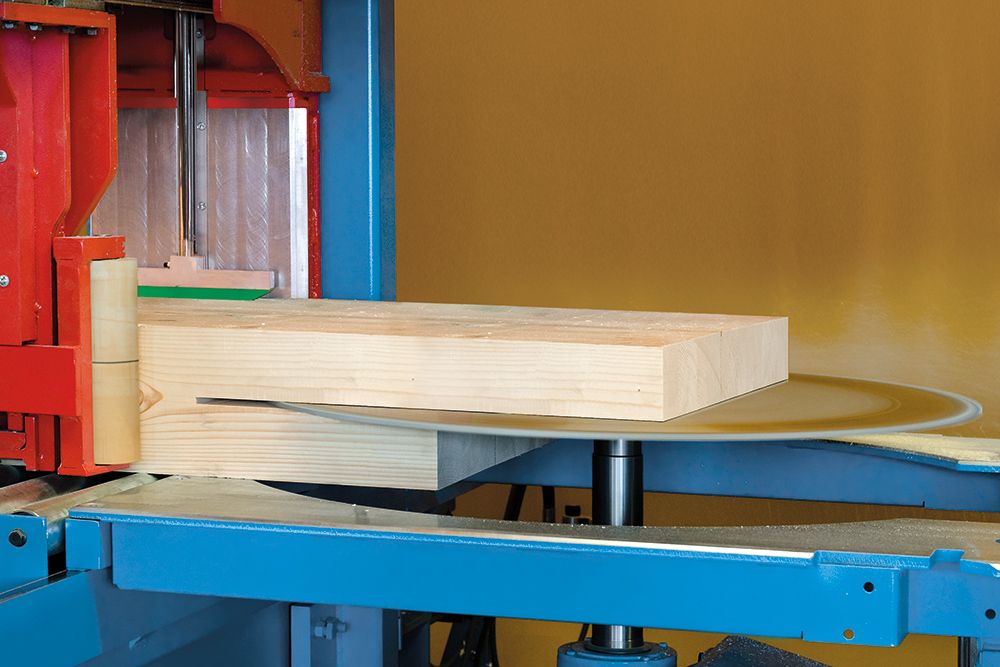 Powłoka stołu roboczego maszyny jest wykonana z wytrzymałego tworzywa sztucznego i zapewnia znakomite właściwości ślizgowe, co zapobiega ścieraniu drewna i gwarantuje precyzyjną obróbkę dzięki zminimalizowanemu tarciu poślizgowemu. Innowacyjna jest też jednostronnie otwarta konstrukcja stołu piły. W zależności od wymiarów, często nie jest konieczne użycie wypychacza klocka, co przekłada się na dużą oszczędność czasu. Oprogramowanie CAMBIUM automatycznie określa, czy klocek zmieści się w otworze. Jeżeli tak nie jest, poprzez obrócenie piły tworzony jest podkład i można wyrzucić klocek.