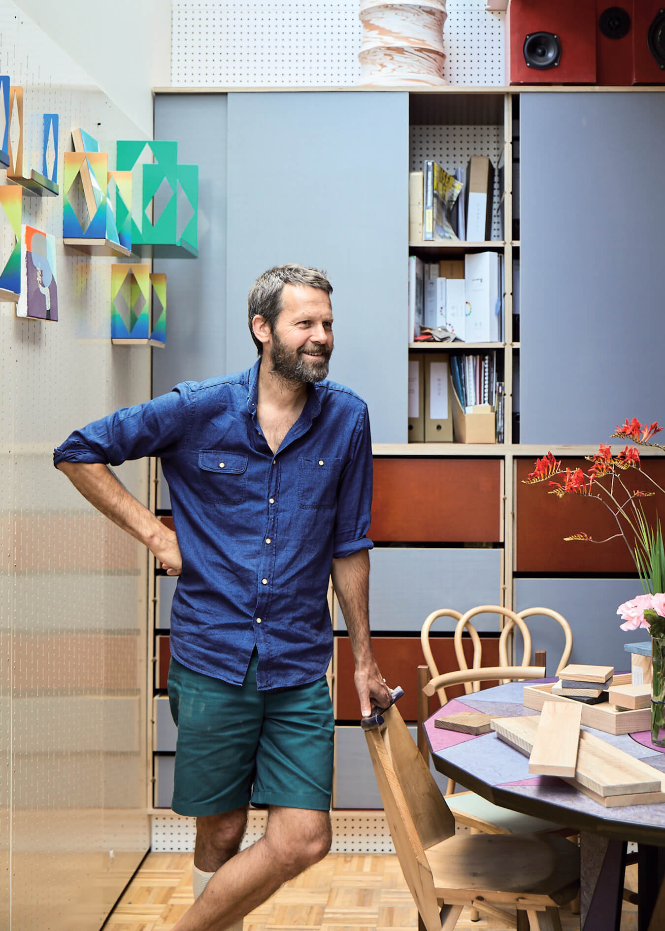 Martino Gamper: Moja praca polega głównie na wymyślaniu i tworzeniu. Nie tylko kreujemy nowe pomysły i projekty, ale również tworzymy i produkujemy, dlatego warsztat stanowi integralną część naszego studia. Współpraca z zakładem Benchmark przy projekcie okazała się właśnie dlatego ciekawa, ponieważ nasze profesje się nakładają. Wizyta w ich warsztacie, podpatrywanie, w jaki sposób tworzą meble, to niezwykle ciekawe doświadczenie. Sama rozmowa, jaką przeprowadziłem z pracownikami Benchmark, okazała się być wymianą myśli między producentami mebli.
