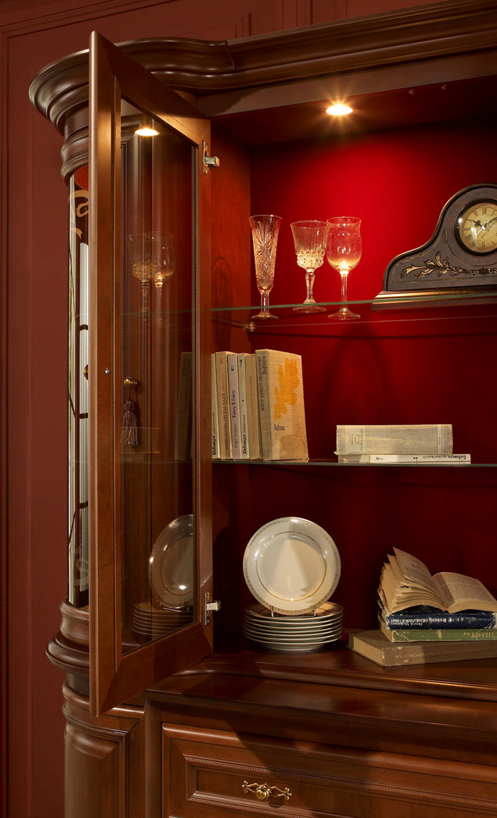 Dwie z nich – Wiktoria i Opium należą do nieprzemijającej klasyki – stylu wytwornych pałacowych wnętrz i reprezentacyjnych gabinetów. Meble z frontami z litego drewna, o linii prostej lub efektownie zaokrąglonych elementach, posadowione na lekkich, ładnie wyprofilowanych nóżkach przyciągają uwagę finezją wykończeń i dopracowanych detali. Dyskretnie oświetlone wnętrza serwantek, barków i witryn wydobywają piękno przedmiotów codziennego użytku. Zdobienia i frezy we frontach oraz gustownie dobrane uchwyty drzwiczek i szuflad korespondują ze stylizowaną formą i niebanalną kolorystyką mebli — czereśnia (Opium) lub venge patyna (Wiktoria). Mimo iż meble zostały wyprodukowane w najnowszej technologii, uważny obserwator patrząc na nie z bliska będzie miał wrażenie jakby każdy element został pieczołowicie wykonany i ręcznie wypolerowany przez mistrza stolarskiego rzemiosła.