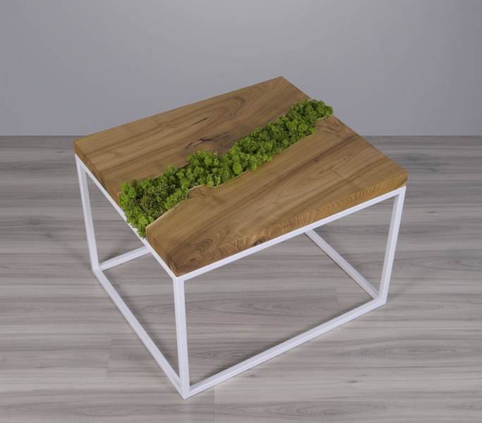 Kraków, Rzeczy Same – stolik z mchem, wym. 72/62/50(h)cm, drewno akacji, mech zielony, nogi ramka białe (zdjęcie nr 3)