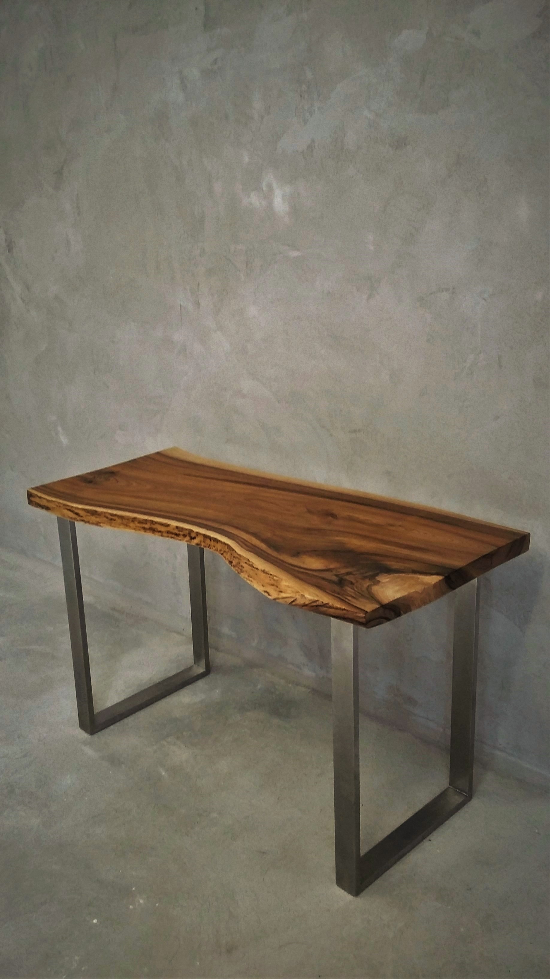 Sopot, Noncomfort – biurko z orzecha europejskiego o wym. 120×46-63×75(h)cm, nogi w U stal nierdzewna szczotkowana (zdjęcie nr 4)