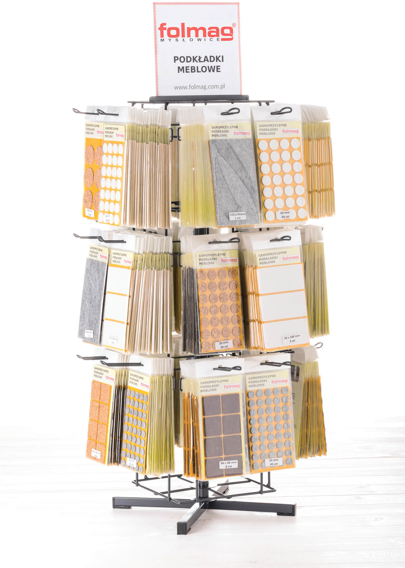 Dla dystrybutorów, hurtowni czy sklepów Folmag ma w swojej ofercie specjalne stojaki ekspozycyjne zarówno na zaślepki samoprzylepne, jak i podkładki filcowe.
