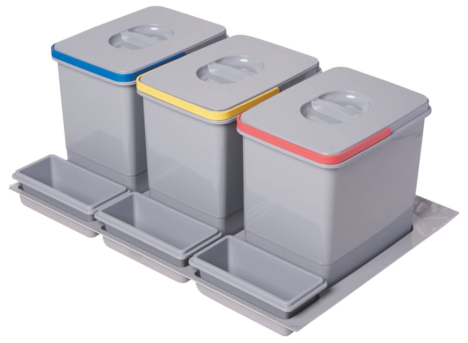 Kosze zawierające praktyczne pokrywki i wygodne uchwyty, zostały przeznaczone do zamieszczenia wewnątrz szuflad o różnych szerokościach: 60, 80 lub 90 cm. Każdy z segregatorów jest wyposażony w podstawkę oraz małe pojemniki. Istnieje możliwość docięcia podstawki idealnie pod wymiar szuflady. Natomiast małe pojemniki warto wykorzystać do przechowywania niezbędnych detergentów.