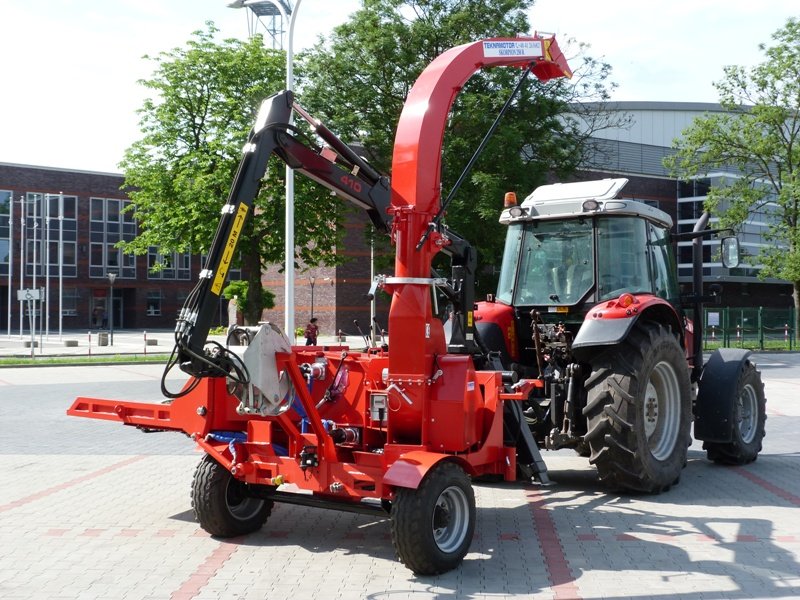 Ze względu na znaczne gabaryty zrębkowanego materiału maszyna wyposażona może być w hydrauliczny dźwig HDS.