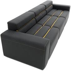 Falista powierzchnia i zaokrąglone krawędzie łagodzą masywną formę sofy. Wygląda przez to swobodnie i jest komfortowa, neonowo żółte przeszycie podkreślają miękkie linie. Model ten jest modułowy i można samemu stworzyć sofę do własnego wnętrza.