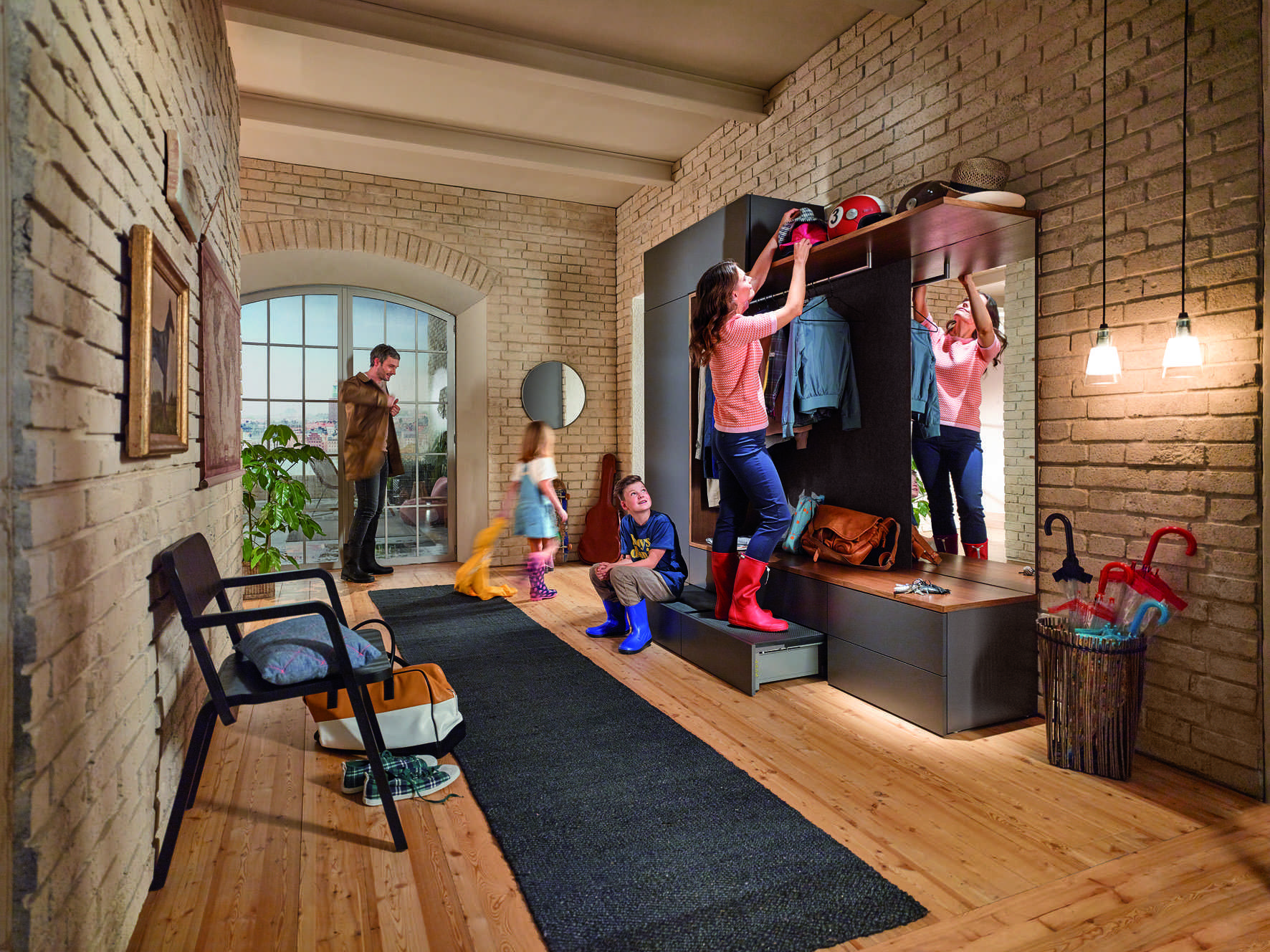 Dzięki technologiom ruchu firmy Blum SPACE STEP otwiera się i zamyka delikatnie i cicho. Rozwiązanie można wyposażyć w mechaniczne technologie ruchu jak BLUMOTION, TIP-ON BLUMOTION i TIP-ON.
