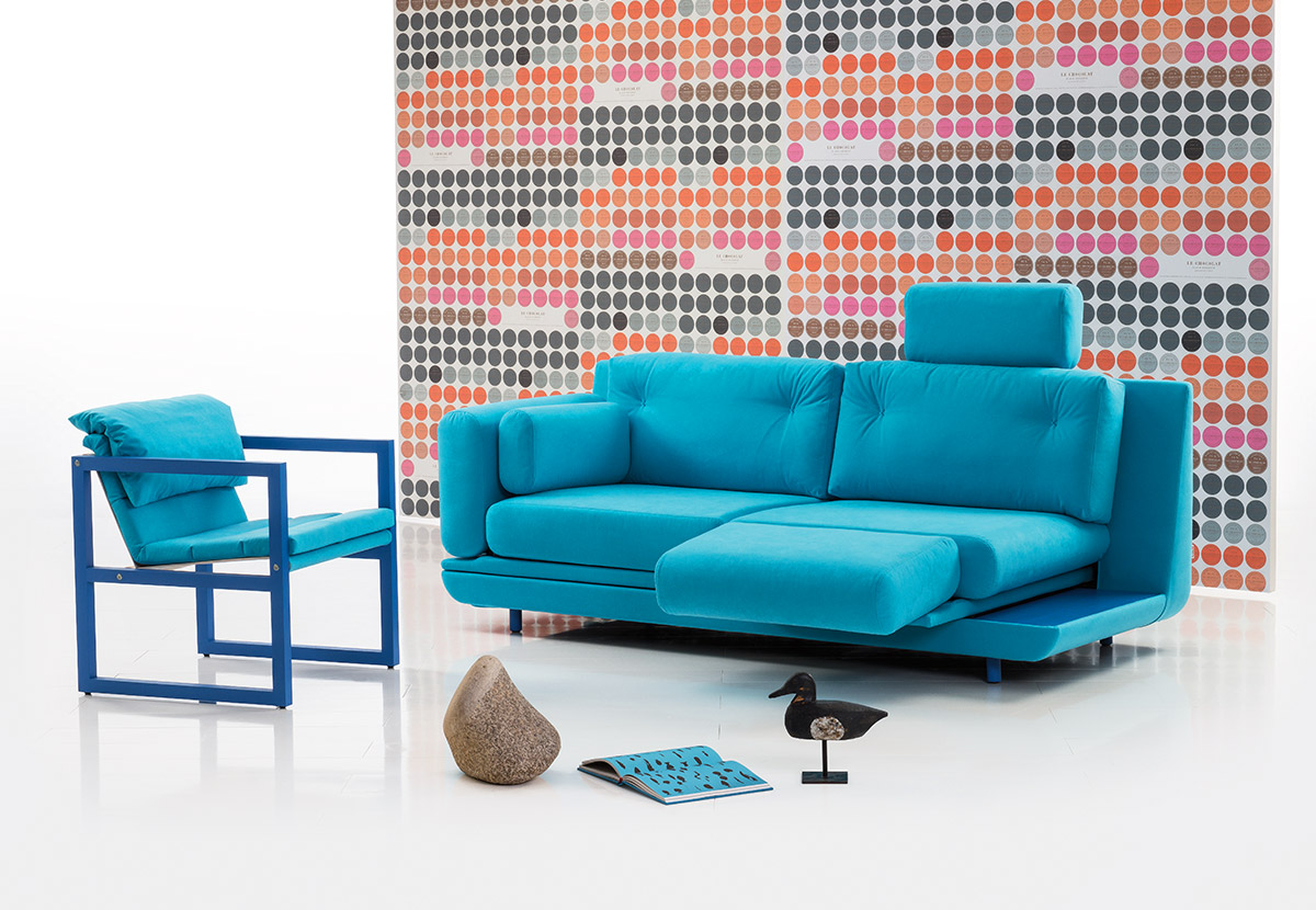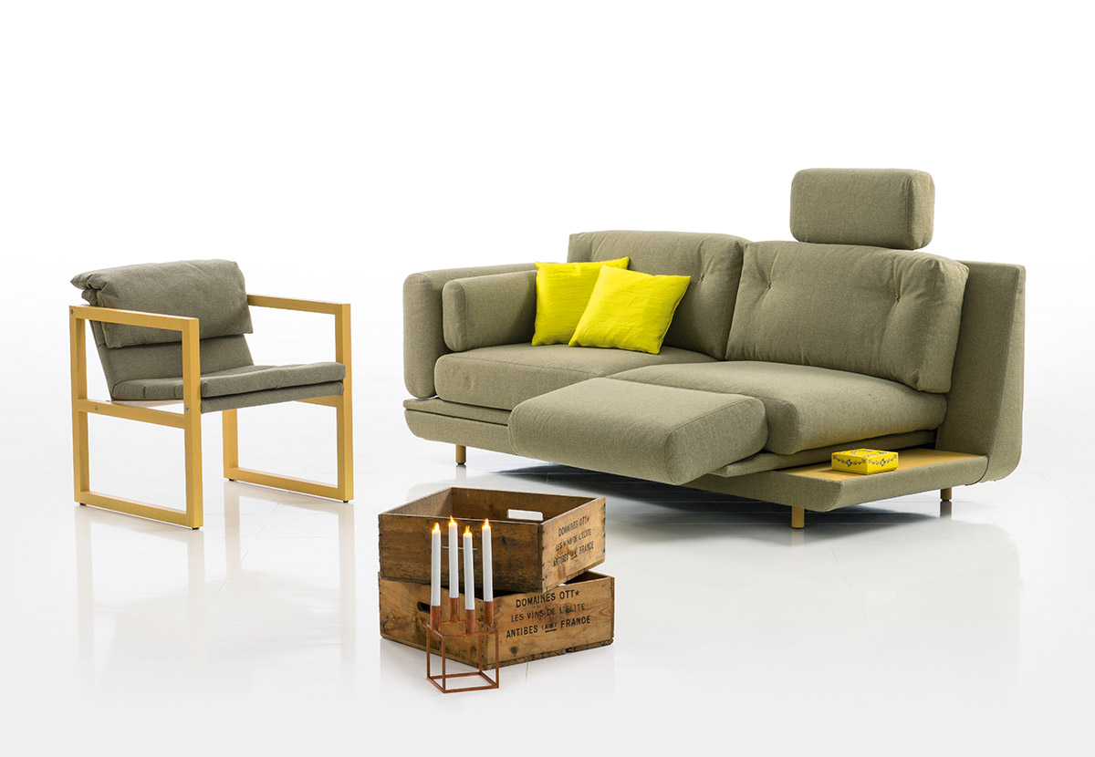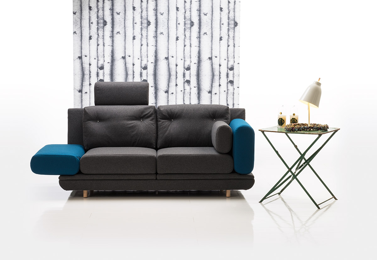 Kanapa attitude o wyjątkowym komforcie siedzenia może być wykorzystywana na mnóstwo sposobów dzięki odchylanym i obracanym do funkcji podnóżka podłokietnikom, jak i stelażom na zamocowanie tapicerowanych zagłówków, ukrytym w oparciach kanapy. Sofy i fotele muskat roztaczają naturalny, minimalistyczny urok a ich czysta forma bardzo dobrze komponuje się też w innych zestawieniach. Dla ramy z drewna litego zaproponowanych zostało 6 odcieni kolorystycznych. Fotel poem nawiązuje do koncepcji fotela-uszaka, przełamuje jednak świadomie tradycyjne cechy takiego mebla. Zamiast nóg poem posiada obrotową podstawę ze zintegrowanym mechanizmem odchylania, górna część została lekko uwypuklona a podłokietniki w swoim kształcie są zupełnie innowacyjne – lub w ogóle ich nie ma.