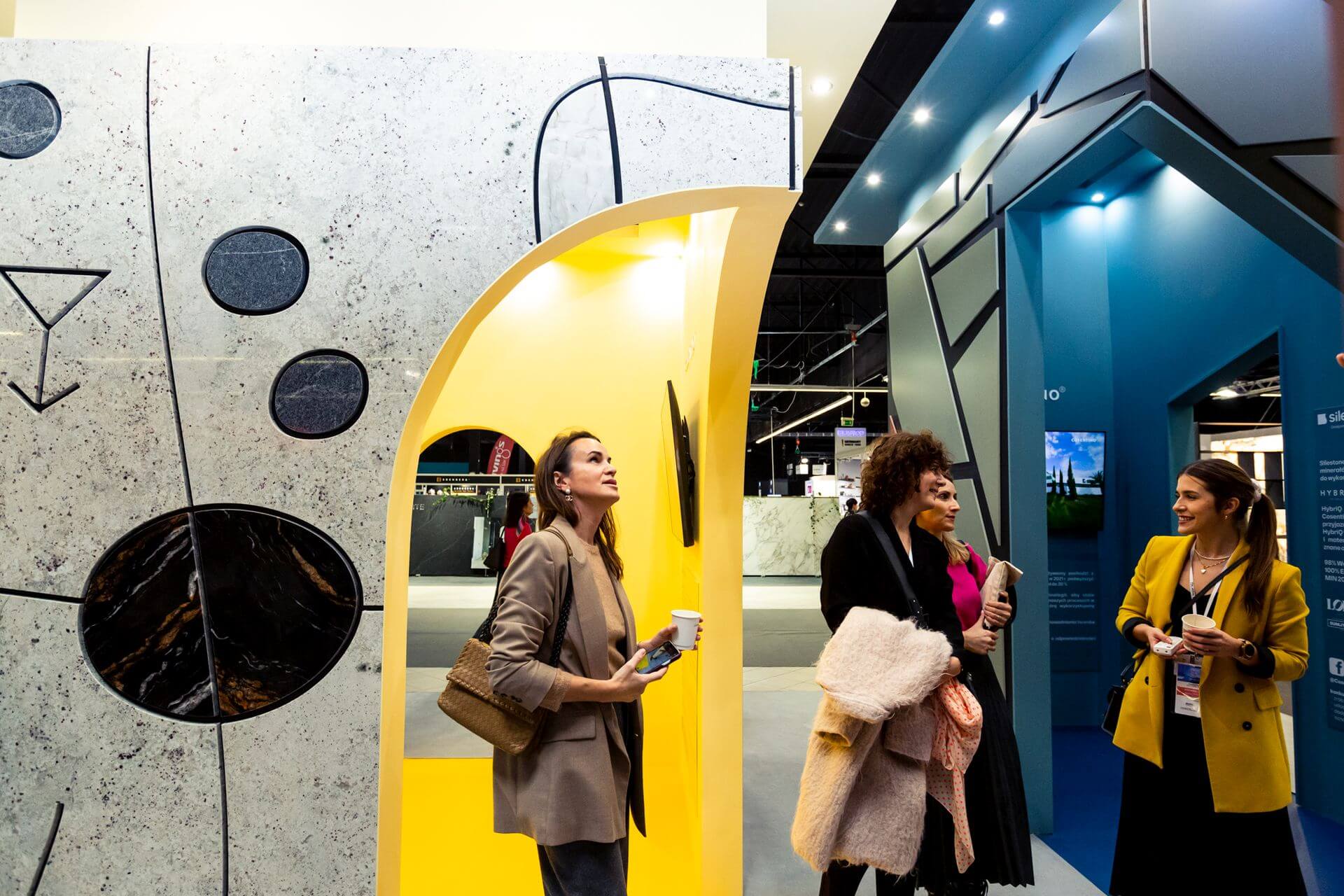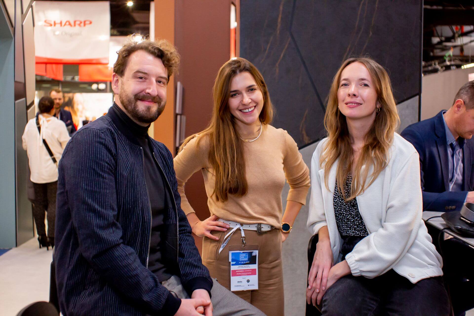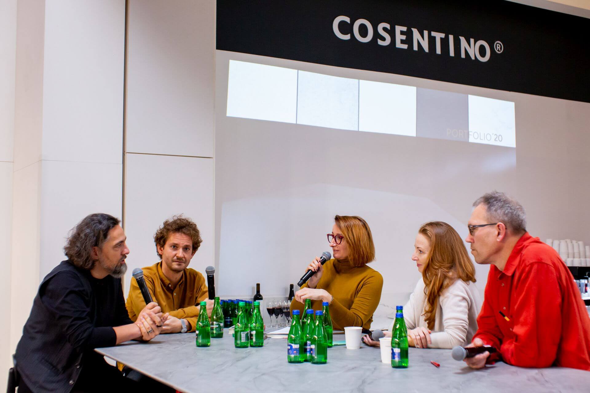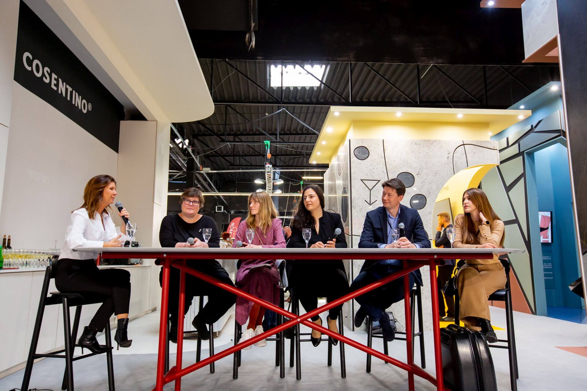 Pierwszego dnia można było spotkać się i porozmawiać z autorem koncepcji stoiska – Szymonem Hanczarem. Kolejny dzień poświęcony był inauguracji współpracy Cosentino z OW SARP, wyzwaniom współczesnego postrzegania ekologii i przyszłości architektury. W panelu dyskusyjnym wzięli udział Marta Sękulska-Wrońska, prezes OW SARP, i Piotr Jurkiewicz – wiceprezes ds. architektury kryzysu klimatycznego OW SARP. Poza nimi w dyskusji uczestniczyli Grzegorz Goworek, współwłaściciel Studio O. oraz Michał Bachowski, reprezentujący portal Noizz. „Nie możemy zrobić regresu, zamieszkując w lesie, ale możemy iść do przodu w sposób rozsądny” – mówiła prowadząca spotkanie Ewa Trzcionka. „Kluczem do odpowiedzialnej architektury jest długowieczność tego co wytworzymy, wykorzystywanie materiałów już zrobionych i produkcja zgodna z zasadami gospodarki obiegu zamkniętego” – wtórował jej Piotr Jurkiewicz. Było to nawiązanie między innymi do zrównoważonej produkcji materiałów Cosentino.