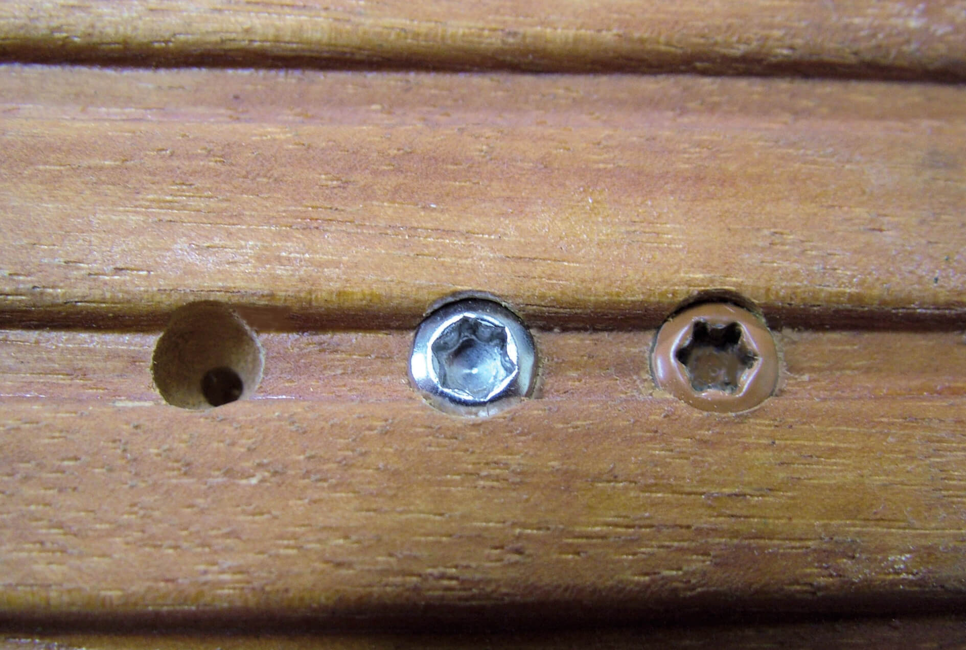 Po ustaleniu konkretnych punktów, gdzie mają być wkręcane wkręty, należy wiertłem tym nawiercić otwory na głębokość odpowiadającą wysokości główki wkrętu, czyli minimum 5 mm. W tak przygotowane otwory wkręcamy wkręty montażowe aż do momentu schowania w otworach główki wkrętu. Nie dociągamy na siłę, a pozostawiamy wkręty tylko lekko dociśnięte. To gwarantuje, że nasze wkręty nie pękną w zimie. Dodatkowym atutem tego wiertła jest możliwość schowania główki wkrętu na dowolną głębokość, co w wypadku główek wkrętów barwionych przez lakierowanie proszkowe na kolor deski z drewna egzotycznego jest niezmiernie istotne dla ochrony lakieru przed zbyt szybkim uszkodzeniem mechanicznym.
