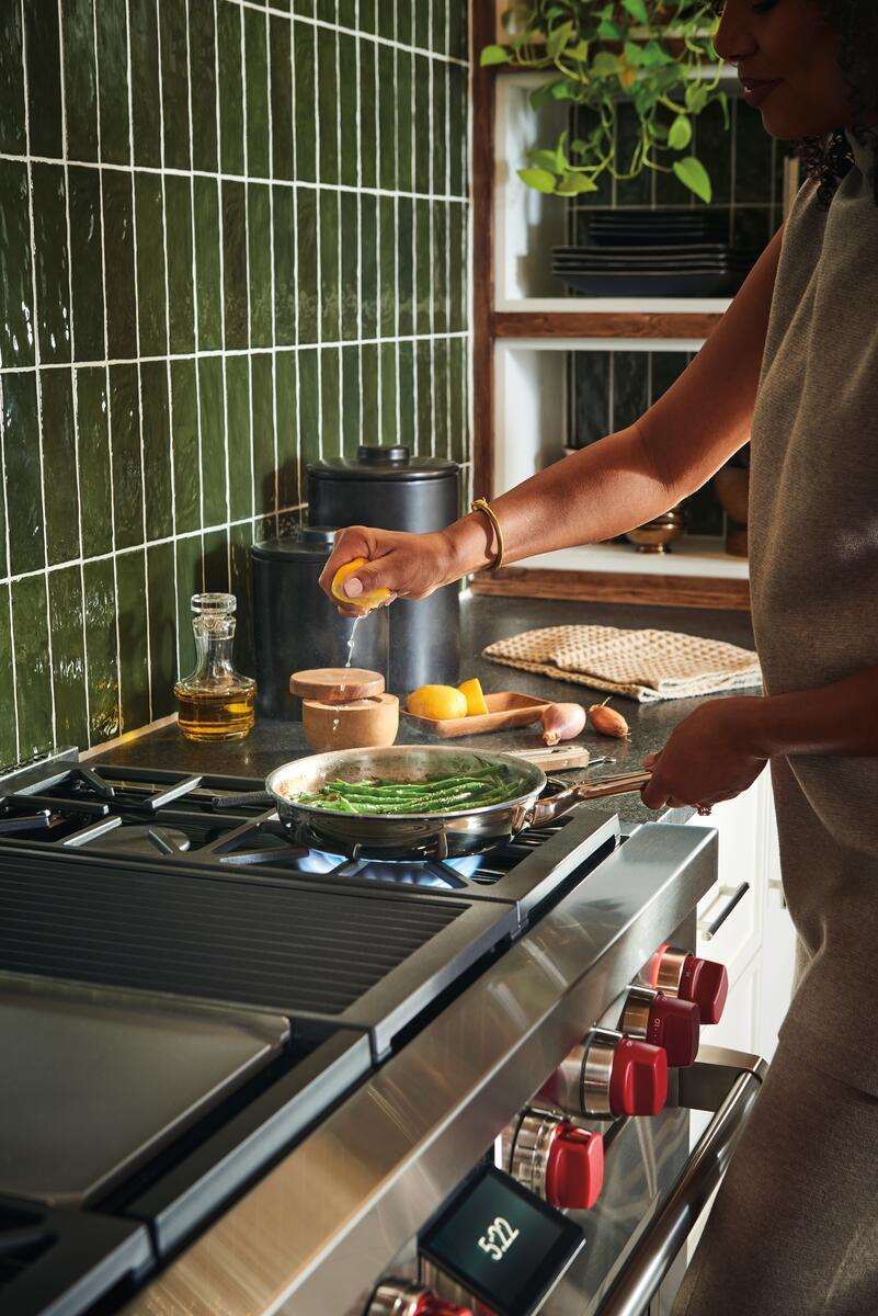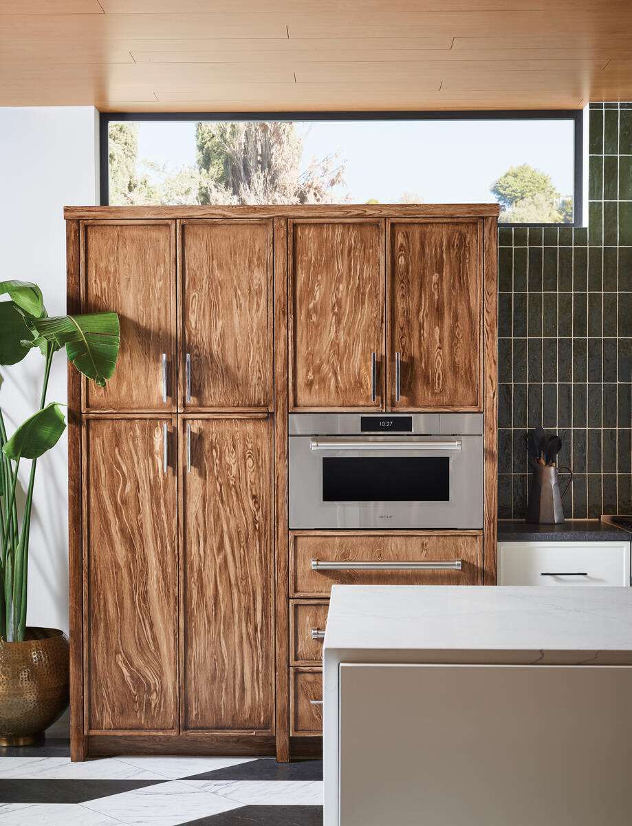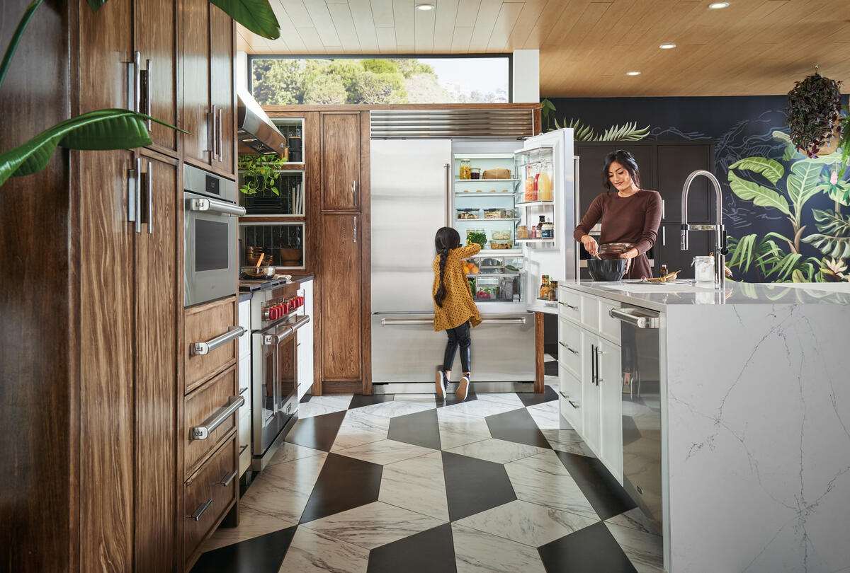 Z klasycznym stylem Mid-Century doskonale łączy się bijący rekordy popularności trend Botanical. Te dwa nurty wydają się stworzone dla siebie, choć dzieli je wiele dekad. Oba tworzą przyjemną przestrzeń, emanującą pozytywną energią, którą szczególnie docenimy w długie jesienno-zimowe miesiące. W tak zaaranżowanej kuchni świetnie sprawdzą się urządzenia AGD amerykańskiej marki Sub-Zero/Wolf z linii Classic. Łączą one zaawansowane technologie z tradycyjnym designem opartym na wykorzystaniu stali szlachetnej. Inną propozycją będą modele z linii Designer. Są one przeznaczone do zabudowy, co daje bardziej jednolity charakter kuchni.