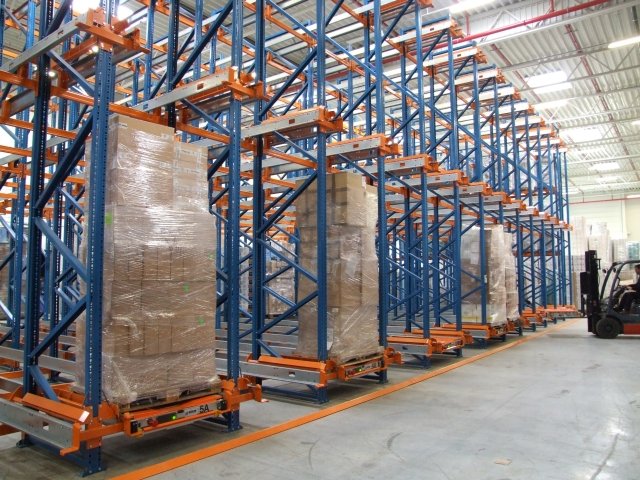 Składowanie dużych partii towaru oraz pełne wykorzystanie kubatury magazynu zapewniają systemy wjezdne. Są dobrym rozwiązaniem w przypadku, gdy towaru nie można układać blokowo, ponieważ jest zbyt delikatny. Przy minimalnych stratach miejsca na ścieżki robocze w kanałach regałów wjezdnych można magazynować duże ilości produktów jednego typu w sposób kompaktowy według zasady LIFO (last in, first out – ostatnie przyszło, pierwsze wyszło).