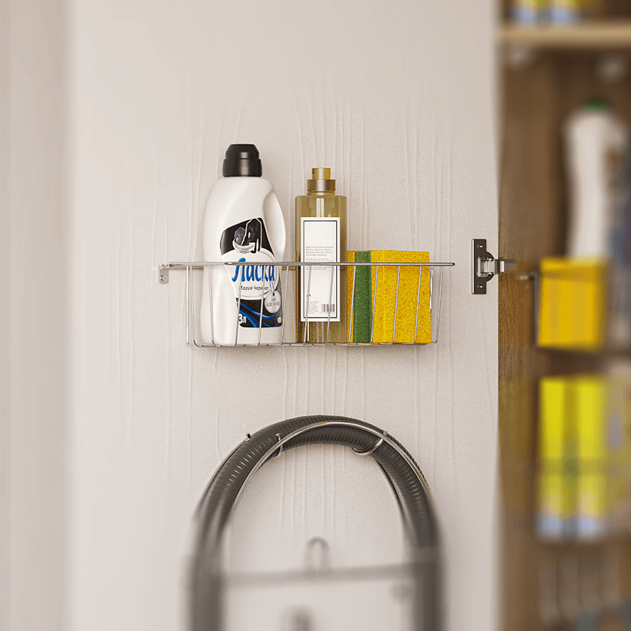 Wykonane z chromowanego drutu kosze na detergenty zamocować można na ścianach i drzwiach szaf oraz pomieszczeń gospodarczych. Pozwalają wykorzystać zazwyczaj niezagospodarowane miejsce, a jednocześnie uporządkować produkty. Zmieszczą się na nich nawet spore butelki i pudełka z detergentami. Montaż koszyków jest bardzo prosty – wystarczy przykręcić je w dwóch miejscach i gotowe.