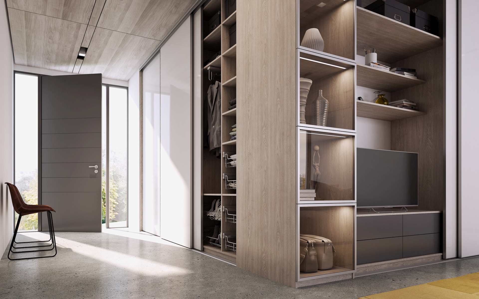 Z zalet szaf narożnych korzysta się na ogół w sypialniach, garderobach, przedpokojach. Jednak architekci wnętrz coraz częściej wkomponowują je też w przestrzenie salonów, jadalni czy gabinetów lub pracowni. Wyposażone w odpowiednie fronty, narożne meble, pozwalają nie tylko przechowywać, ale też eksponować – książki, design, sztukę. Albo stworzyć pojemne i dopasowane do przestrzeni archiwum w biurze. Rozwiązanie nie tylko praktyczne, ale i w najlepszym, nowoczesnym stylu!