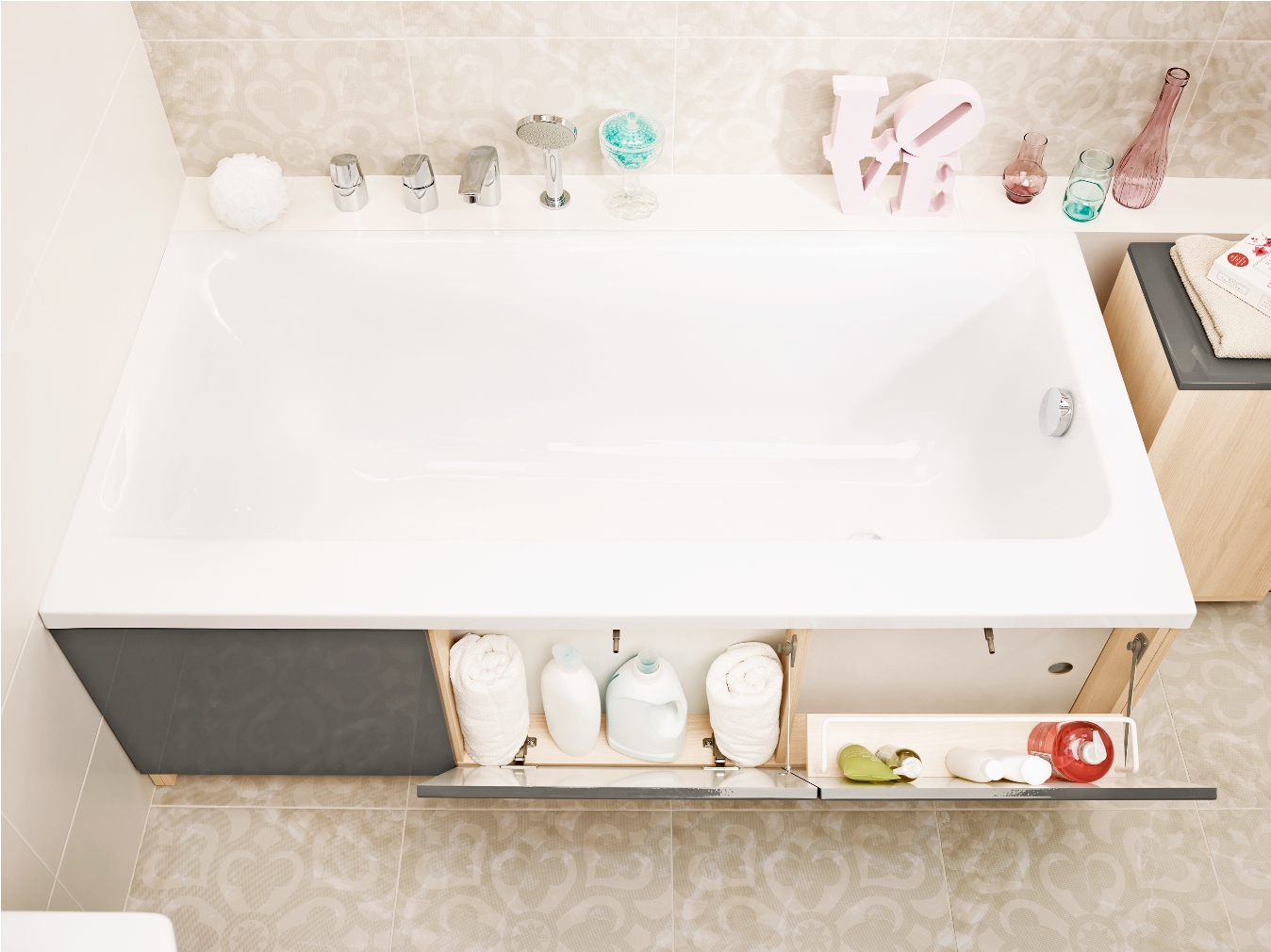 Nowoczesna łazienka ma być przede wszystkim funkcjonalna. Dlatego będziemy wybierać meble, które ułatwią i uprzyjemnią korzystanie z łazienki. System cichego domykania, otwierania przez naciśnięcie czy ułatwiający wieszanie to już powszechne ułatwienia. Coraz powszechniejszym trendem są systemy ułatwiające przechowywanie – przegródki w szufladach, miejsce na mop i wiadro w słupku czy relingi na ręcznik. Także wanny mogą być funkcjonalne dzięki obudowie meblowej Smart, w której schowamy kosmetyki i podręczne akcesoria. Ciekawostką są także lustra z wbudowanym oświetleniem LED oraz systemem wysuwania.