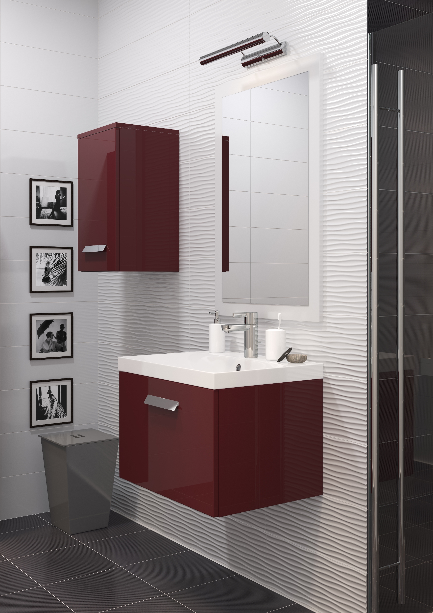 Wciąż skłaniamy się ku ponadczasowym, białym meblom, które od dawna opierają się wszelkim trendom, dając poczucie lekkości i świeżości. Fronty błyszczące dodają szyku i elegancji. Są idealne zarówno dla tradycjonalistów, jak i zwolenników stylu nowoczesnego i co ważne – powiększają optycznie nasze niewielkie łazienki. Choć widoczna dziś jest moda na minimalizm, promująca chłodne i proste stylizacje, to w naszych łazienkach nie zabraknie miejsca na meble w wykończeniu imitującym drewno. Do odważniejszych aranżacji będziemy wybierać kolor – zawsze modną czerwień, ponadczasowe szarości, aż po czerń.