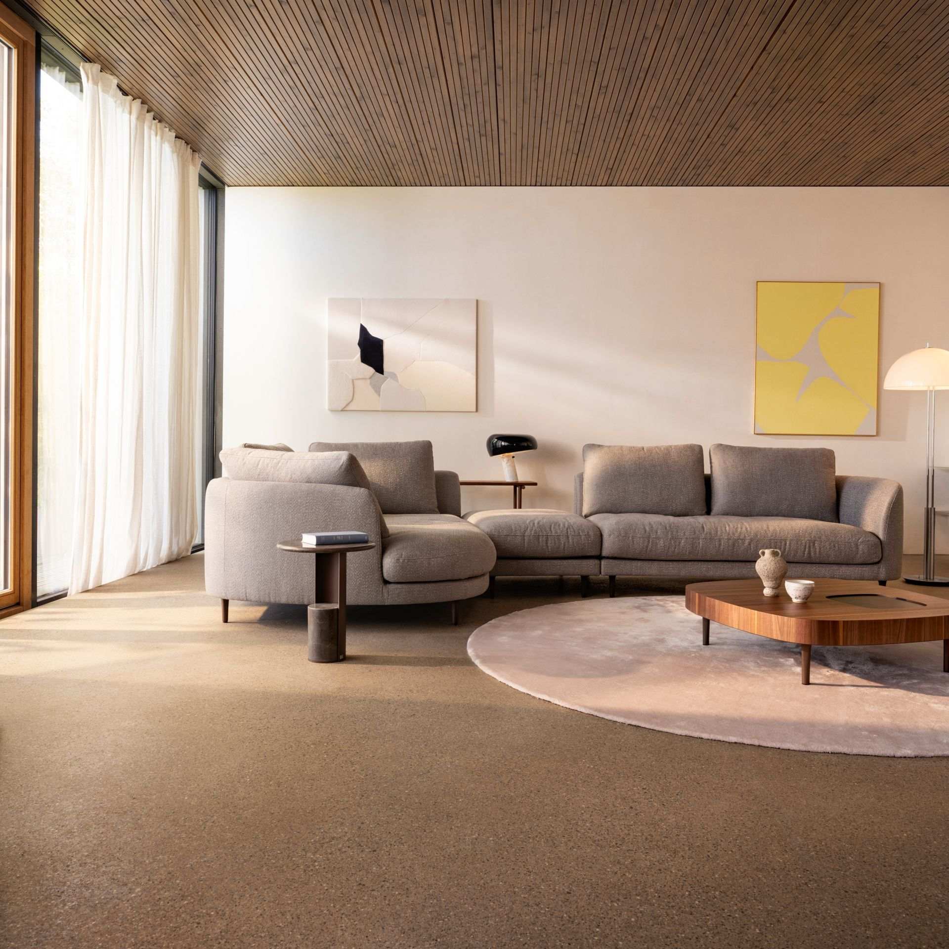 W 2026 roku widać również kontynuację kształtów nawiązujących do organicznej estetyki. Sofy przyjmują miękkie, opływowe kształty, które łamią ostre linie i geometryczne podziały popularne przez ostatnią dekadę. Krągłe formy nie tylko nadają wnętrzu wizualnej lekkości, ale budują także atmosferę przytulności i spokoju. Projektanci zauważają, że organiczne linie lepiej współgrają z trendami w architekturze wnętrz, gdzie coraz więcej pojawia się łuków, falistych mebli, zaokrąglonych wysp kuchennych i biomorficznych lamp oraz dekoracji.